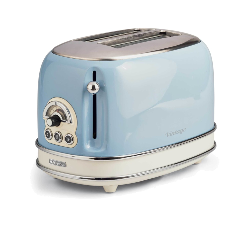 Az Ariete Vintage kenyérpirítója 2 nyílással rendelkezik két szelet kenyér egyidejű pirításához, és a kivehető morzsatálcának köszönhetően könnyen és biztonságosan eltávolíthatja a pirítás során a kenyérpirító belsejében maradt maradékokat.