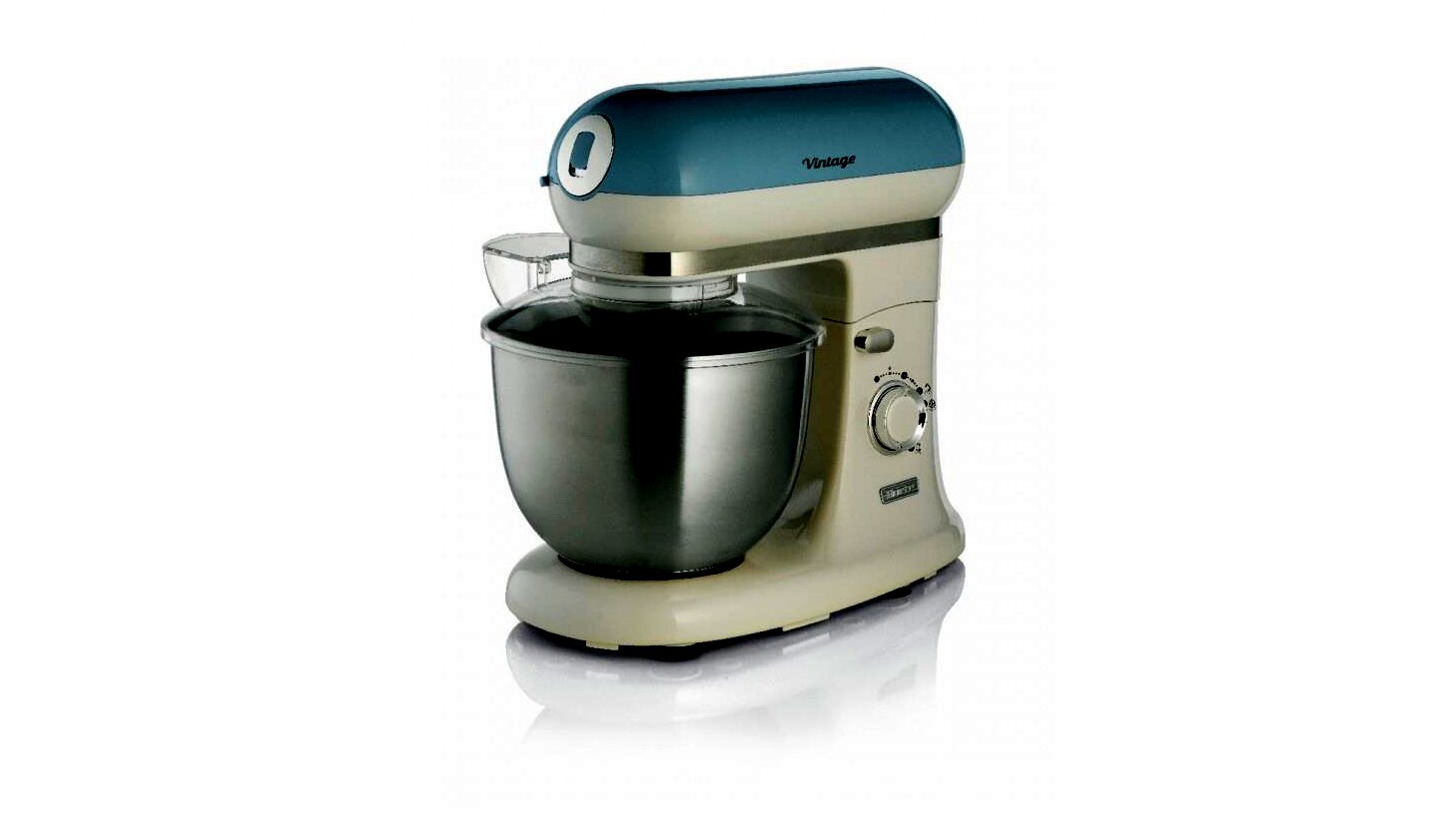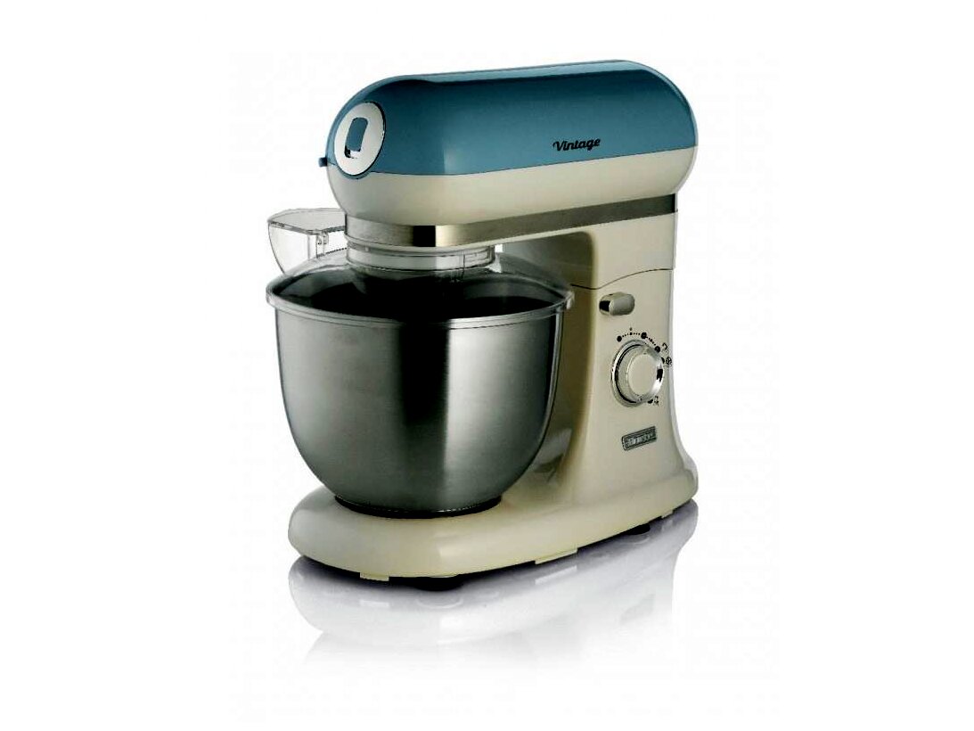 Konyhai gép, 5,5 l-es rozsdamentes acél tállal, amelyben összekeveri az alapanyagokat, kényelmesen felnyitható az összetevők könnyű hozzáadásához. Vintage designja a mai modern konyhákban emlékeztet a múlt hagyományaira.