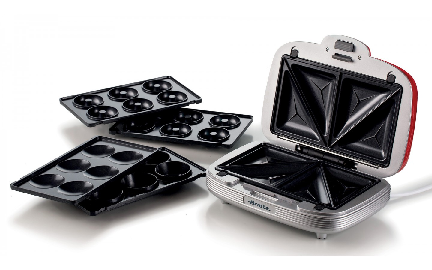 Az Ariete Party Time termékcsalád évek óta töretlen népszerűségnek örvend, és nincs kétségünk afelől, hogy a sorozat legújabb készüléke bármelyik konyha slágere lesz! A három cserélhető tányérnak köszönhetően tápláló melegszendvicseket, muffinokat és finom fánkokat készíthet. A főzőlapok tartós tapadásmentes bevonattal rendelkeznek, és a cseréjük gyerekjáték. A készülék nagy teljesítménye lehetővé teszi, hogy megsüsse kedvenc süteményeit. Nem kell termo sütőt használnod ahhoz, hogy tökéletes muffinokat készíts, és a fánkok sem lesznek mélyhűtöttek. Az ízletes finomságok mindössze 6 perc alatt elkészülnek, és a visszajelző lámpák segítségével nyomon követheti a sütési folyamatot. Az útmutatóban olyan alaprecepteket talál, amelyeket saját igényei szerint módosíthat.