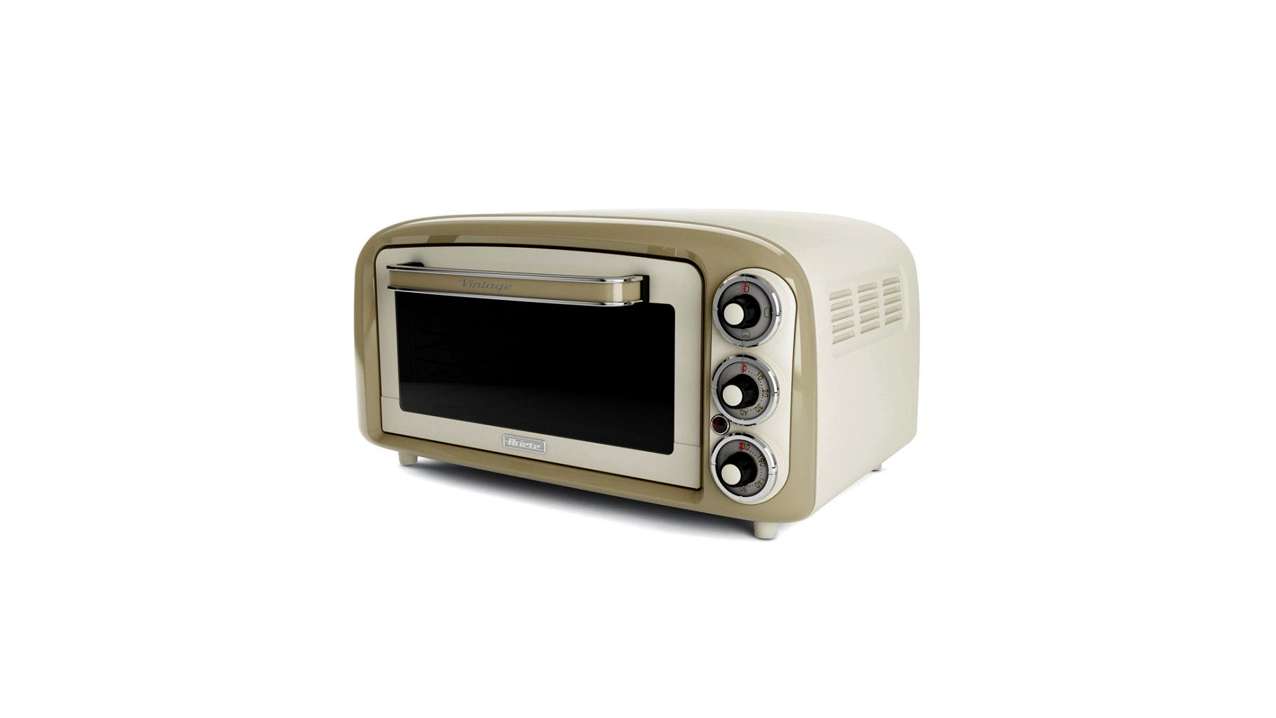 Elektromos sütő, 18 literes kapacitás, a pizza sütés lehetősége a nagyított alsó részének köszönhetően. Acélráccsal és alumínium tálcával kiegészítve, állítható időzítővel 60 percig, a beállítható hőmérséklet 230 ° C-ig, hőmérséklet-fény, 3 főzési pozíció (csak felül, csak alul, alul-felül) és dupla üveg ajtó.
