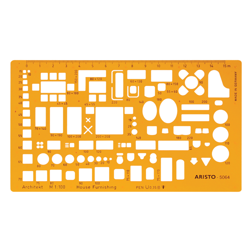 További információk: Méretezett bútorok, szabványos szimbolika, ergonomikus kialakítás, hordozható méret. Ideális választás oktatási célokra is, ahol diákok és tanárok egyaránt használhatják az építészeti tervek elkészítéséhez. Könnyen tisztítható és tartós anyaga biztosítja a hosszú távú használhatóságot, így az Aristo GEO5064 bútorsablon megbízható társad lesz a mindennapi tervezési feladatok során.