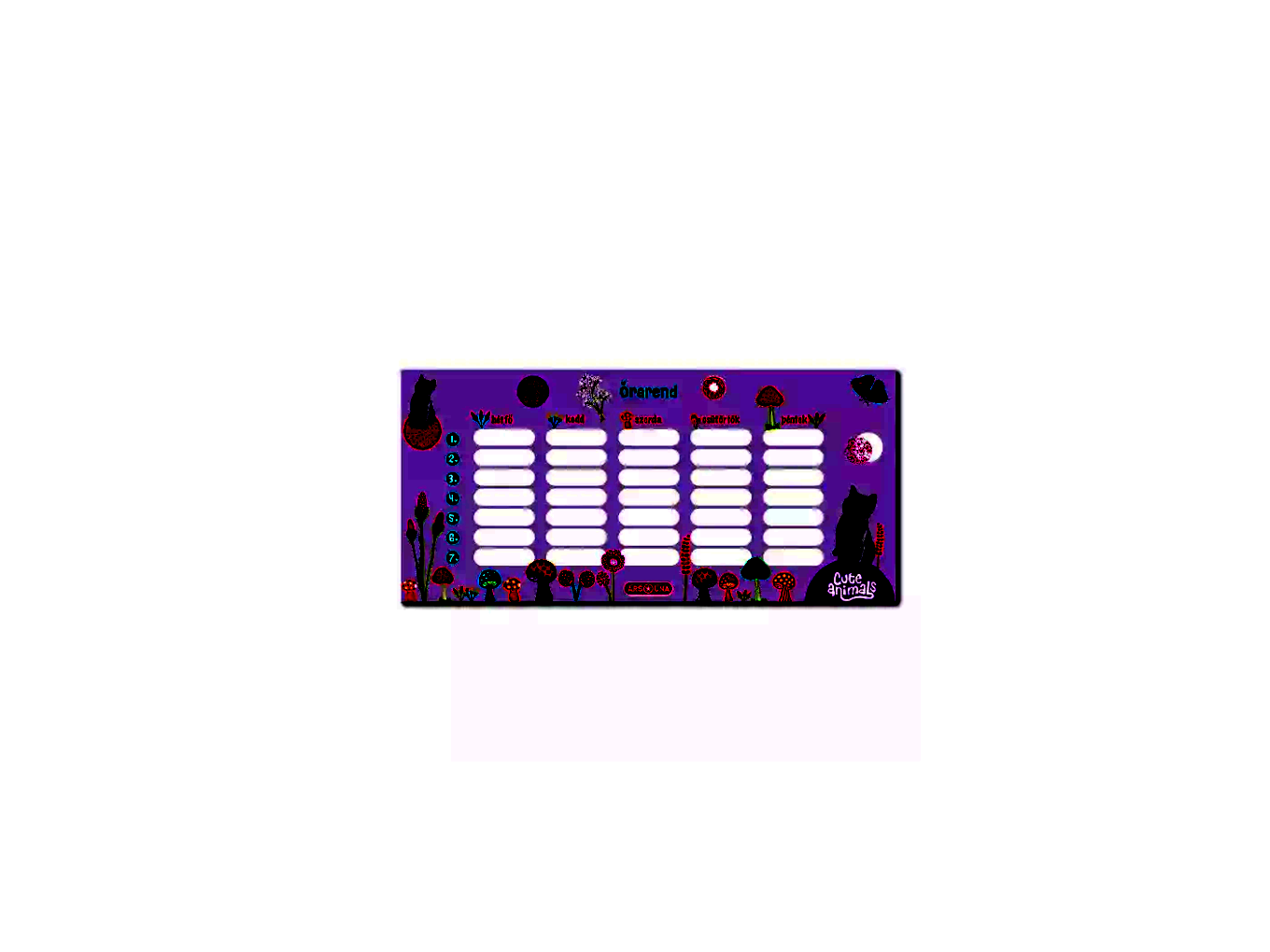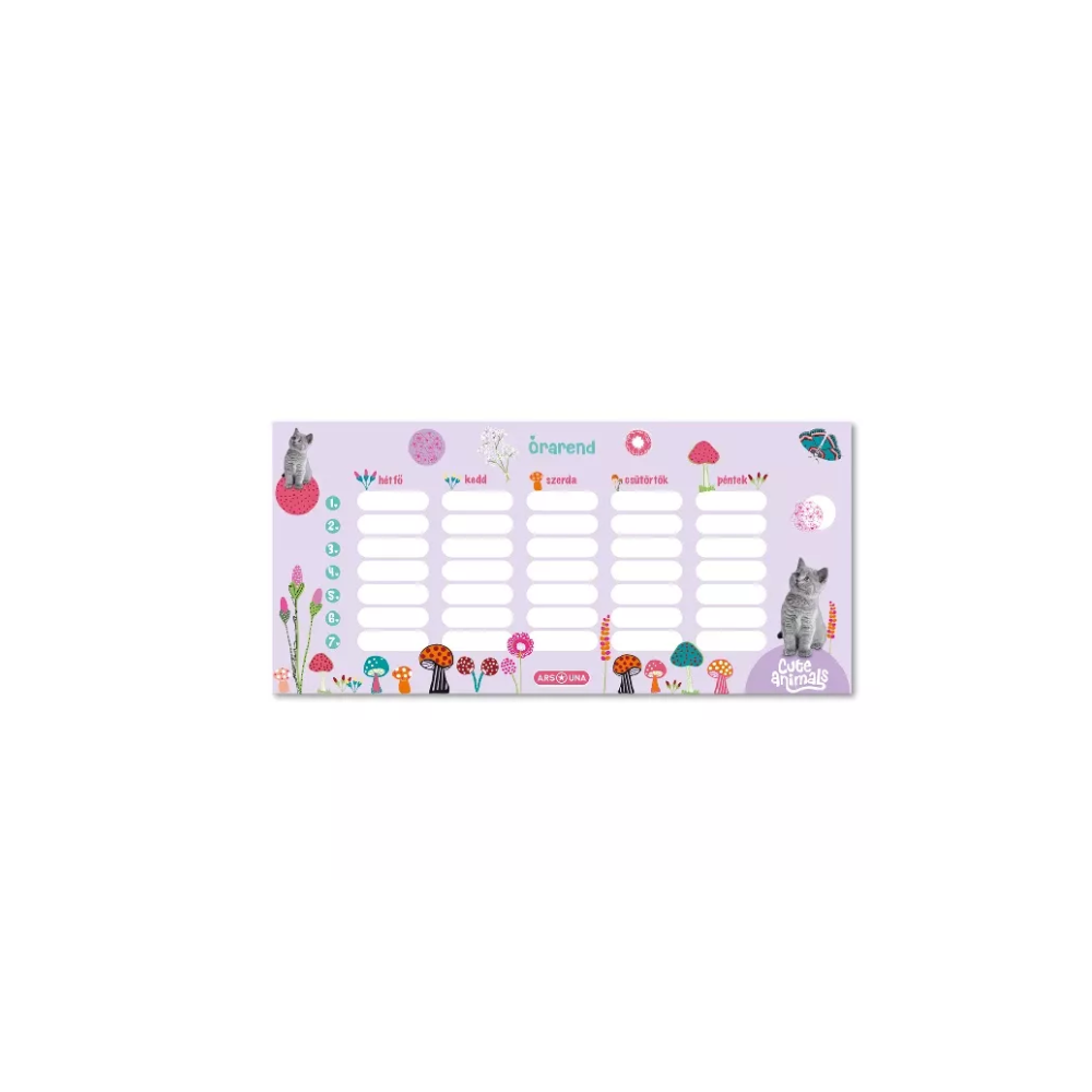 Fedezd fel a kedvenceink listájára újonnan felkerült, bájos órarendünket, amely minden gyerek ízlését elnyeri vidám cica mintával! Praktikus kialakítása révén az Ars Una Cute Animals órarend tökéletes társ lesz az iskolai napok megszervezésében.