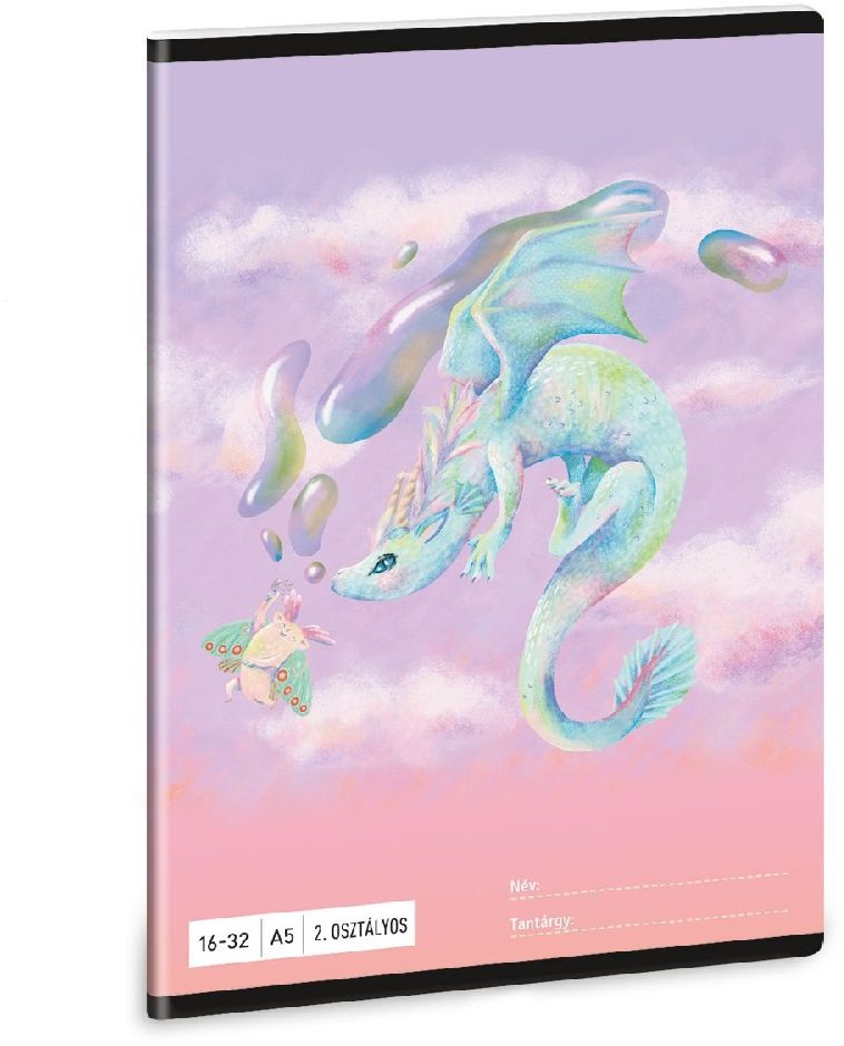 A/5-ös méretű, vonalas füzet 2. osztályos szabványos vonalazással. 32 lapos, belseje 75 gr-os papírból. Borítója 250 gr-os műnyomó kartonra lekerekített sarkokkal, fényes fóliázással, 4 szín nyomással készült.
