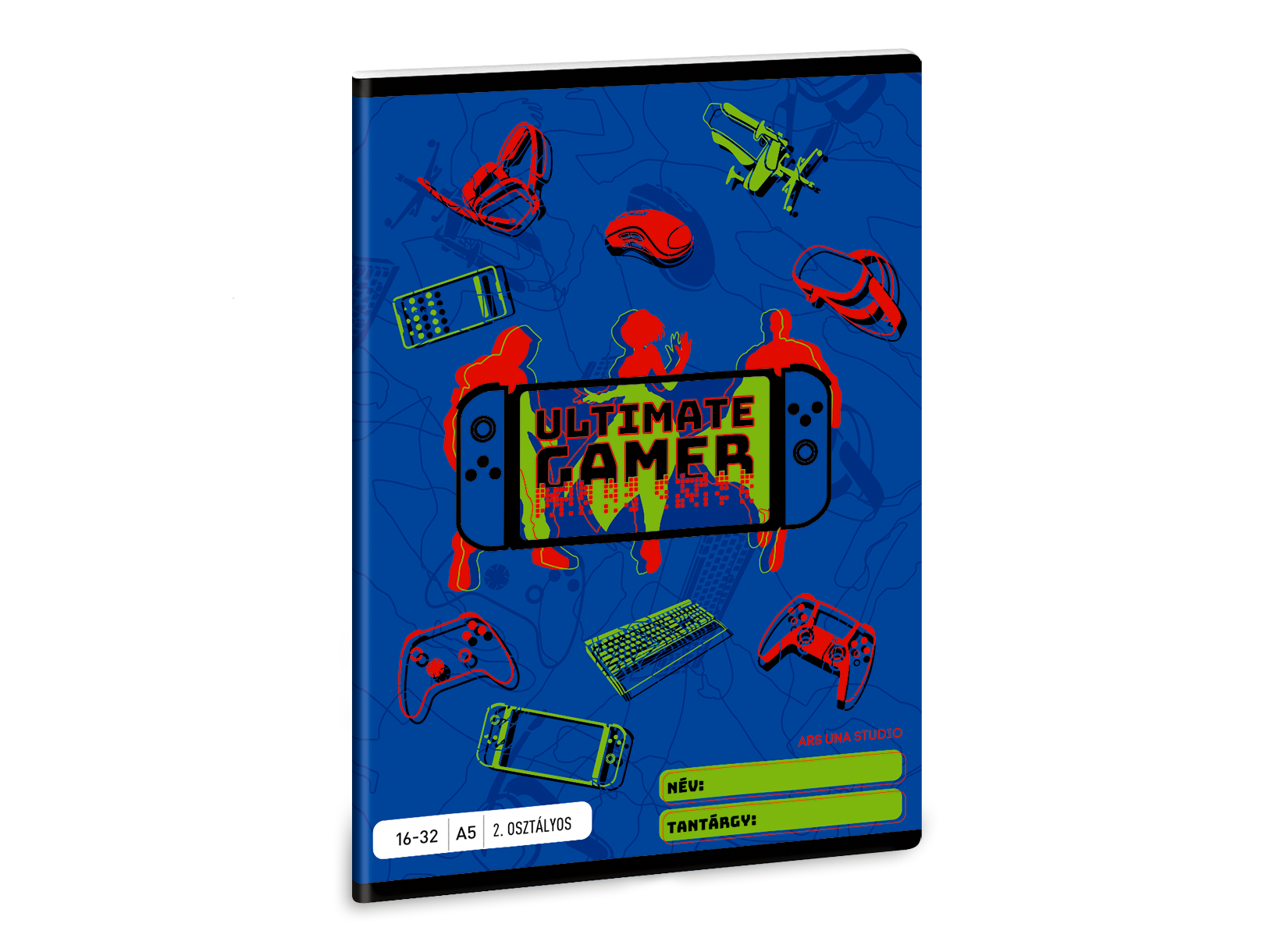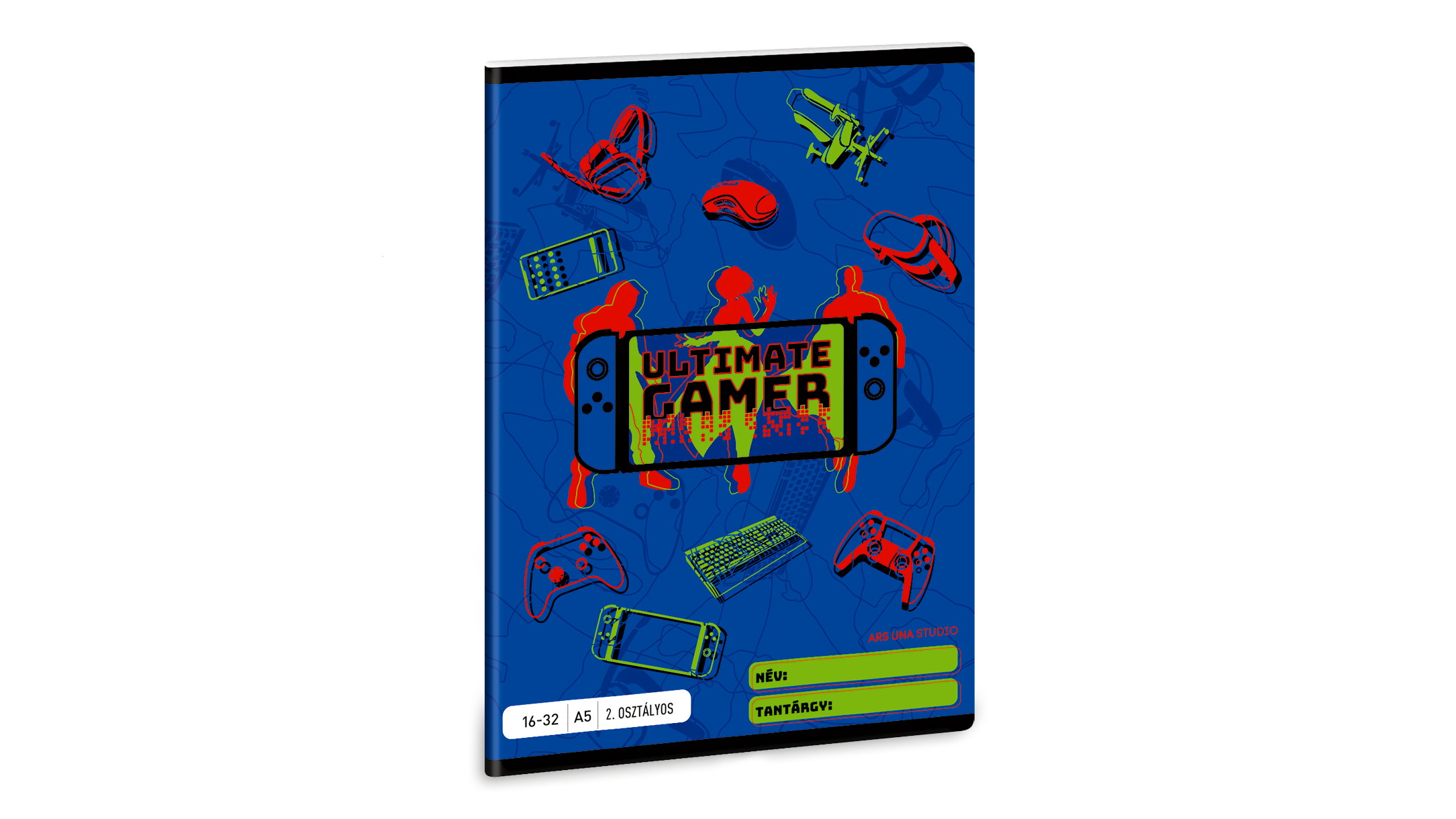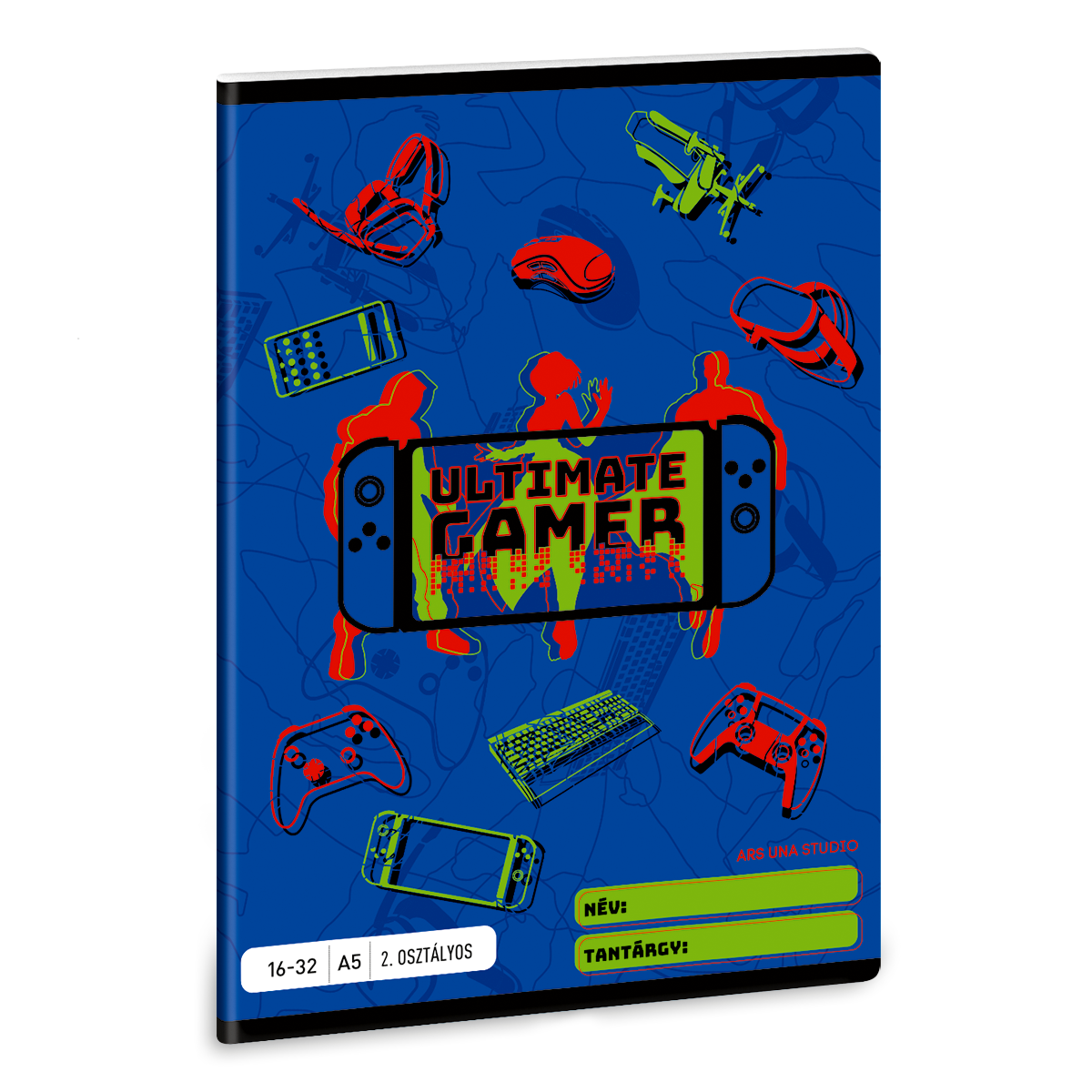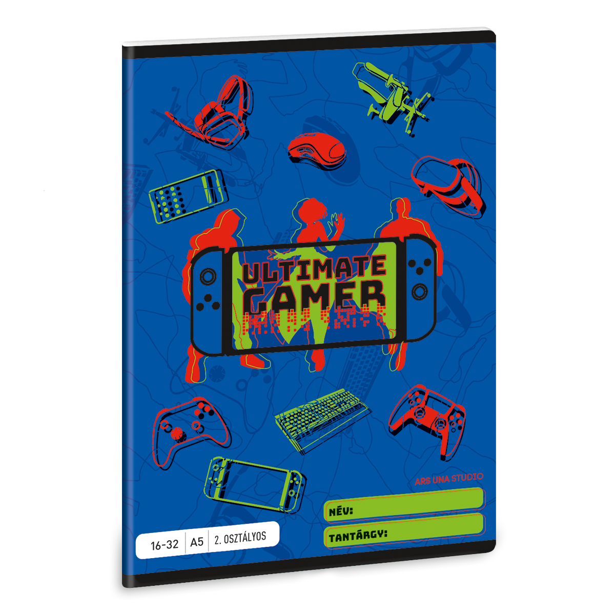- Vonalas füzet másodikosoknak, borítóján gamer grafikával