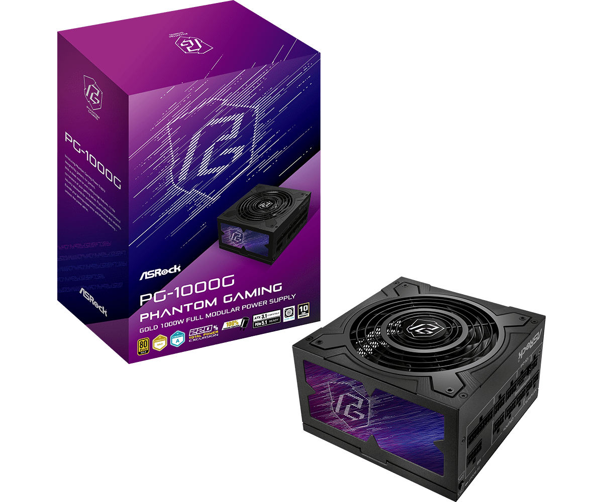 AS-Rock 1000W Phantom Gaming 80+ Gold Moduláris Tápegység - Fekete