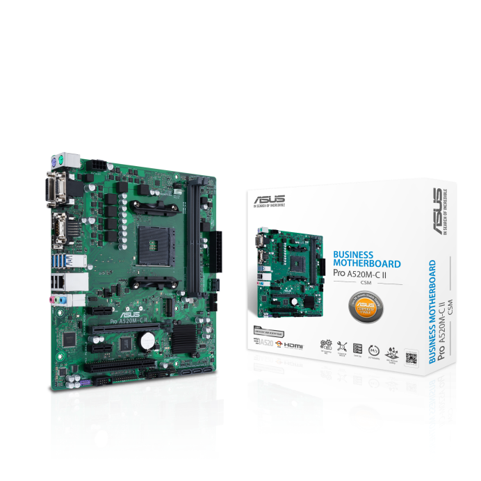Az ASUS A520M-C II/CSM Pro DDR4 AMD AM4 ATX Alaplap kiválóan alkalmas olyan üzleti célokra, ahol a stabilitás, megbízhatóság és hatékony IT menedzsment áll a középpontban. Az AM4 foglalatnak köszönhetően készen áll a Ryzen™ 5000 sorozatú, 4000 G-sorozatú és 3000 sorozatú asztali processzorok fogadására, így kiváló teljesítményt biztosít a legmodernebb számítógépes alkalmazások számára.