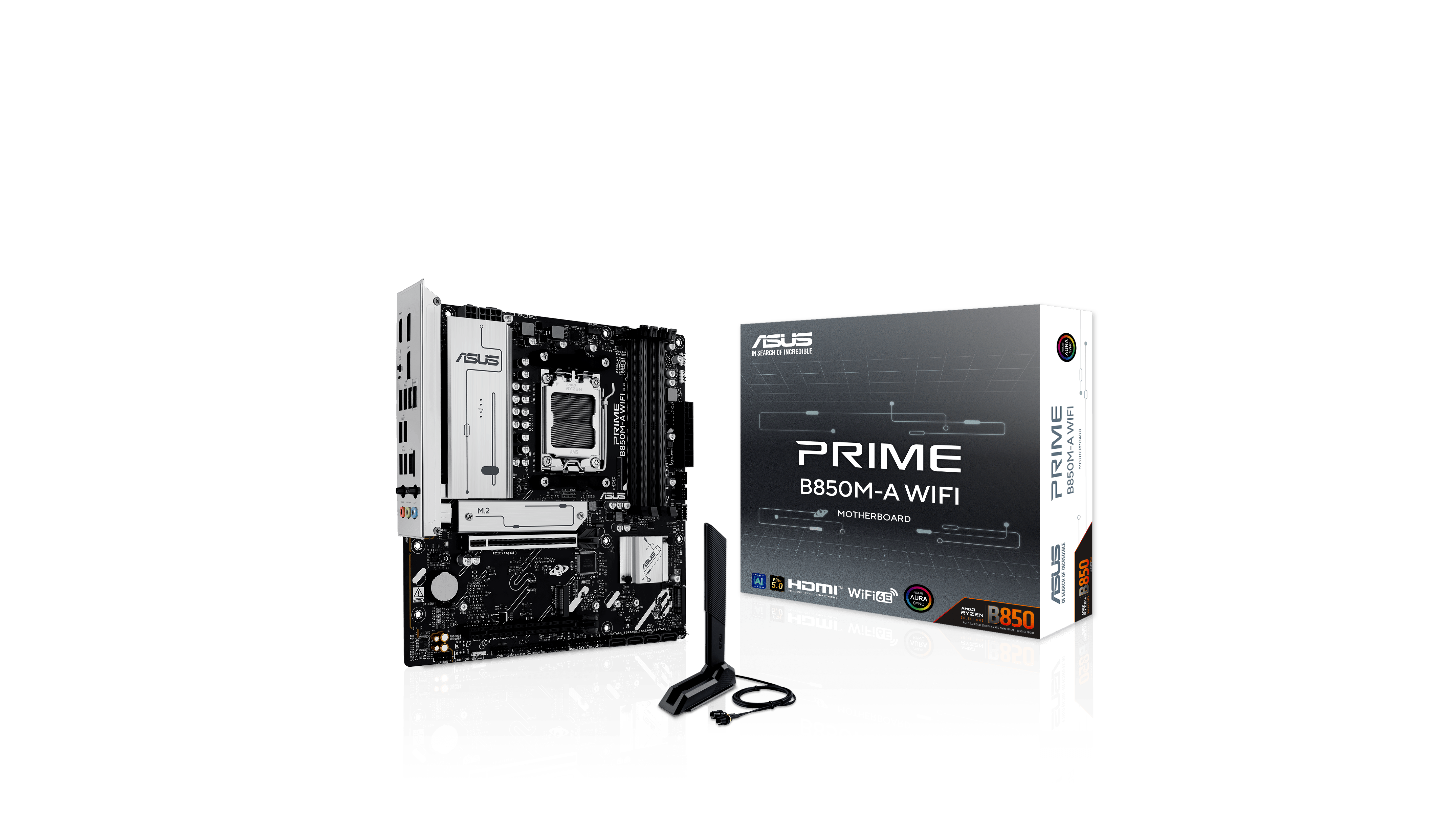 Az ASUS Prime sorozatú alaplapokat kifejezetten arra tervezték, hogy maximálisan kihasználják az AMD Ryzen™ 9000 sorozatú processzorok teljesítményét. Az ASUS Prime B850M-A WiFi alaplap felhasználóinak és PC DIY építőknek egyaránt számos teljesítményoptimalizálási lehetőséget kínál intuitív szoftver- és firmware funkciók segítségével. Kiválóan alkalmas az AI alkalmazásokhoz szükséges erő és csatlakozási lehetőségek biztosítására.