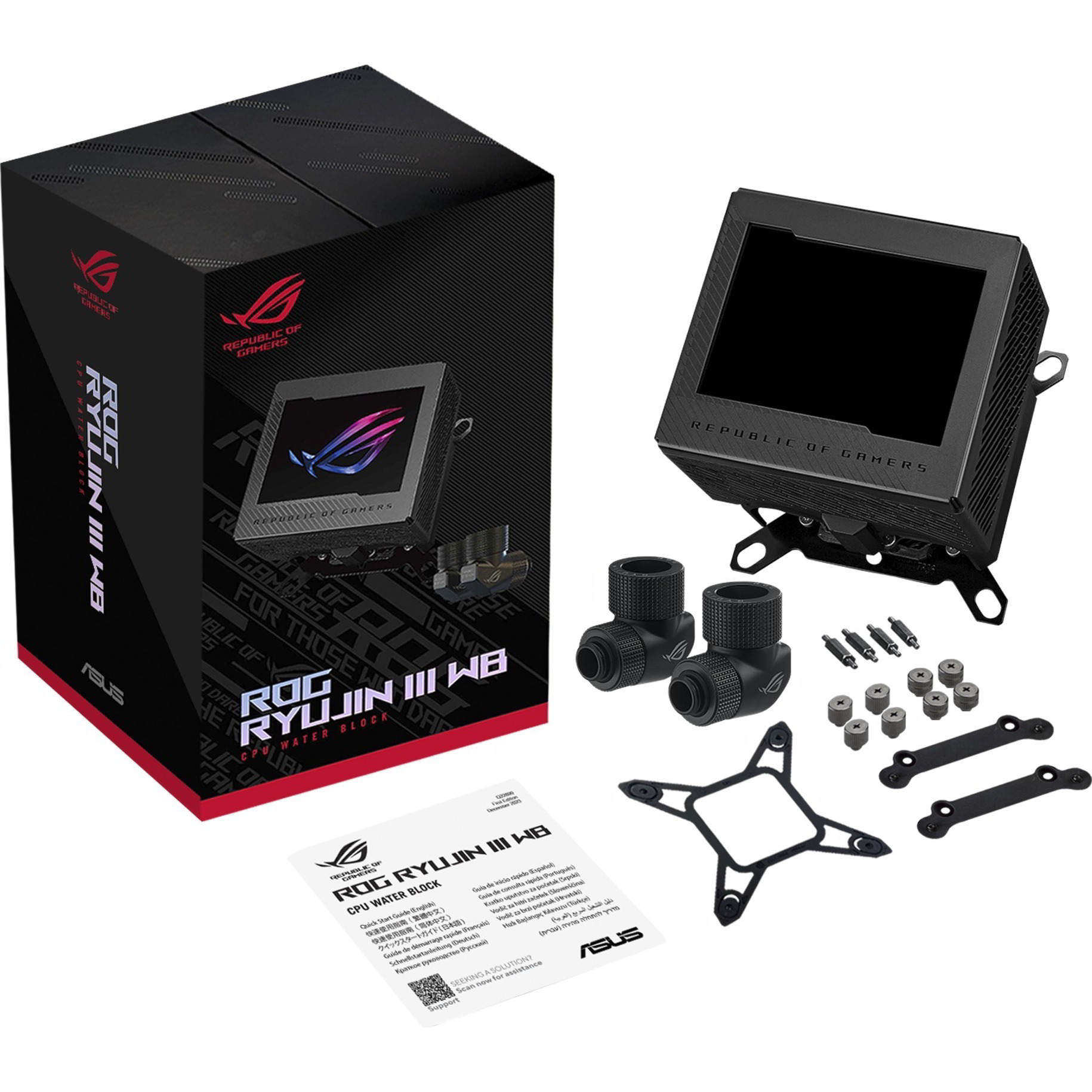 A ROG Ryujin III WB a legkorszerűbb hűtéstechnológiákat ötvözi egy látványos, testreszabható esztétikával. Ez a folyadékhűtőrendszer egy Asetek-vízhűtő blokkal rendelkezik, amely 178 mikro hűtőlamellát és egy rézötvözetből készült hűtőlemezt tartalmaz. Ez a kombináció kivételes hőhatékonyságot biztosít, amely hozzájárul a legújabb Intel és AMD processzorok teljesítményének növeléséhez.