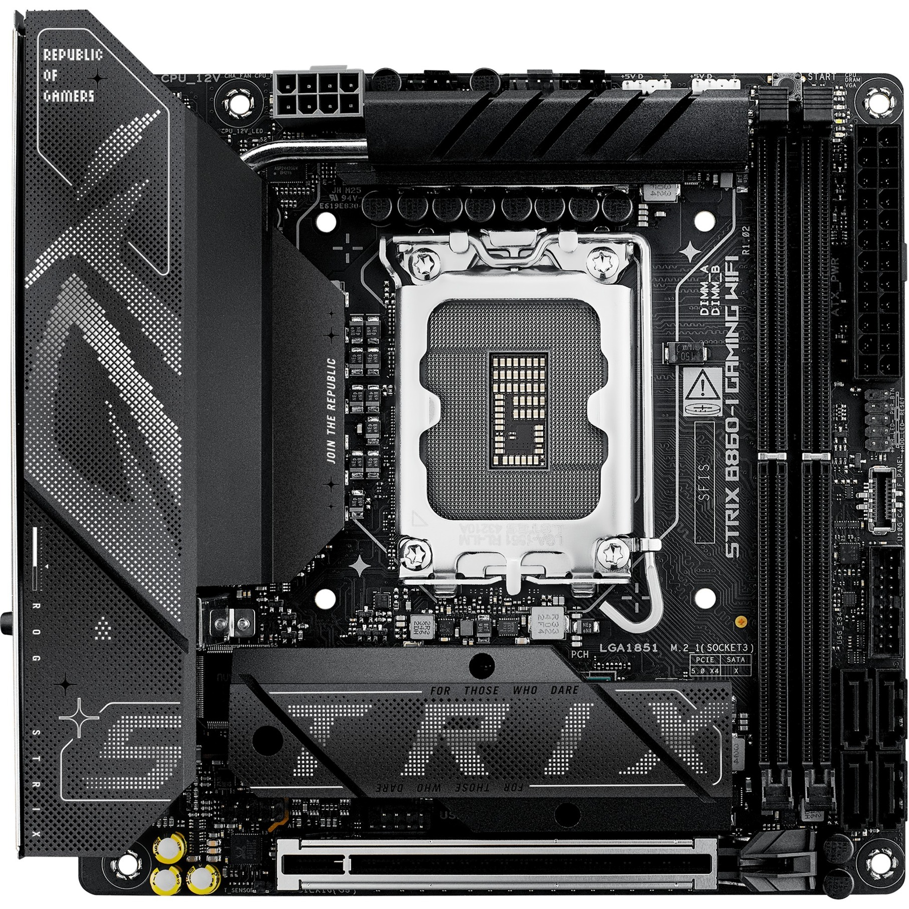 Az ASUS ROG STRIX B860-I GAMING WIFI egy kiváló minőségű alaplap, mely az Intel® B860 chipkészleten alapul, és támogatja az Intel® processzorokat az 1851 foglalathoz. Kiváló választás azok számára, akik erős gaming PC-t szeretnének építeni kompakt méretben.