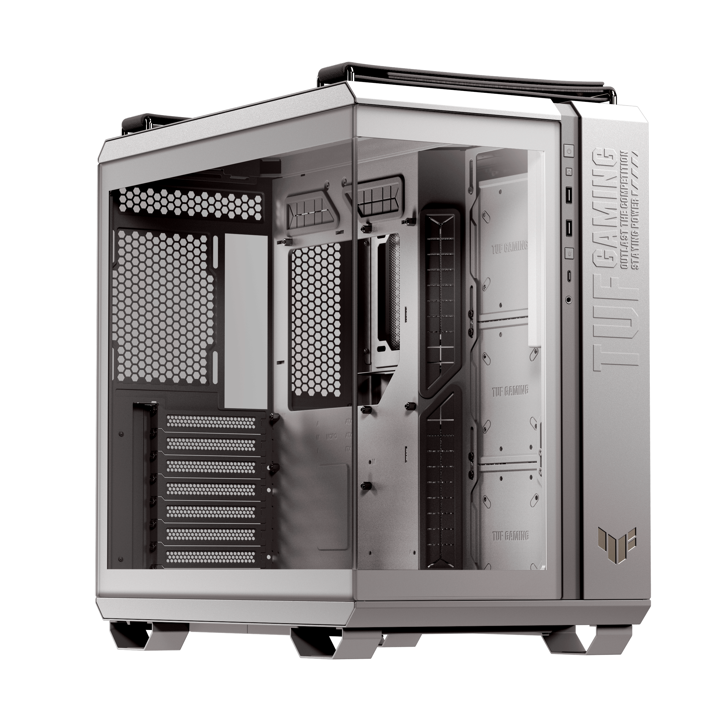 A TUF Gaming GT502 Horizon frontpanelje USB-C porttal rendelkezik, amelyek akár 20 Gbps átviteli sebességet is támogatnak, valamint két USB-A port és egy fejhallgató/mikrofon csatlakozó is rendelkezésre áll.