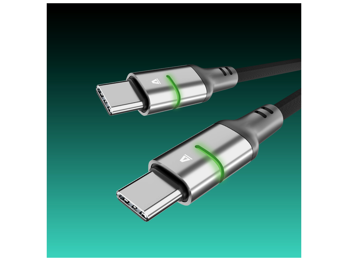 55AVAX CB632 STEELY LED 1m 60W USB-C fonott gyorstöltő kábel egyedi LED világítással, amely stílusos és megbízható töltést nyújt minden USB-C eszköz számára.