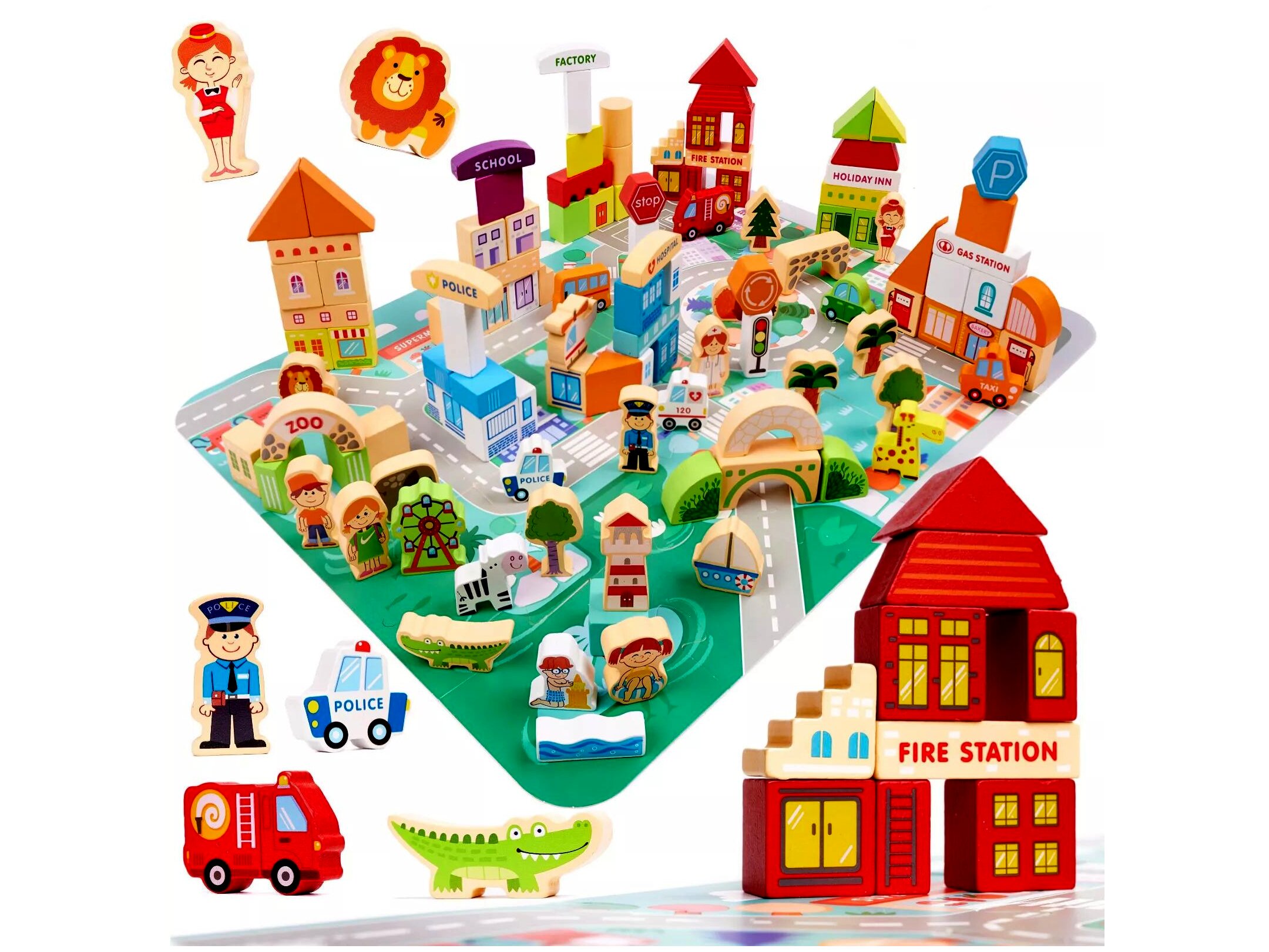 Ezek a fa építőkockák nem csupán szórakozást nyújtanak, hanem fejlesztik a gyerekek finommotoros képességeit és kreativitását is. A gyerekek számtalan különböző városi szituációt alkothatnak meg, miközben játékosan tanulnak a különféle épületekről és járművekről. A játéktábla puzzle formában érkezik, amely összerakva utcákat és tereket ábrázol, így a gyerekek saját városi környezetet hozhatnak létre. Ezzel a játékkal a kicsik képzelete szárnyalhat és rengeteg órát tölthetnek hasznosan, játék közben tanulva.