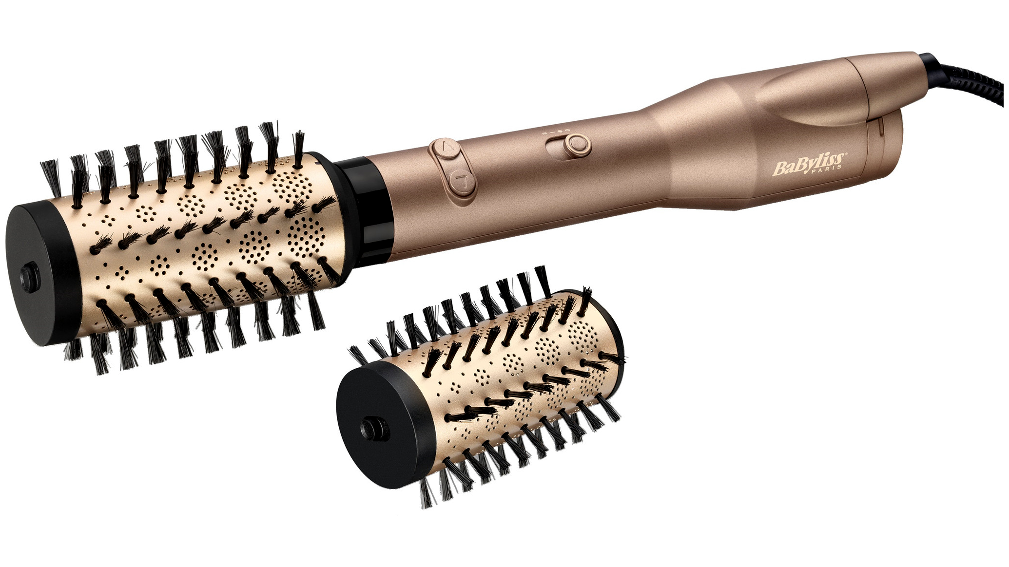 A hajformázóhoz tartozó két különböző méretű forgókefe lehetőséget biztosít számos stílus kialakítására. A 50 mm-es kerámia bevonatú forgókefe ideális a volumen növeléséhez és a lágy, nagy hullámok készítéséhez. A 38 mm-es sörtéjű forgókefe pedig tökéletes a kisebb, szorosabb göndörítéshez.