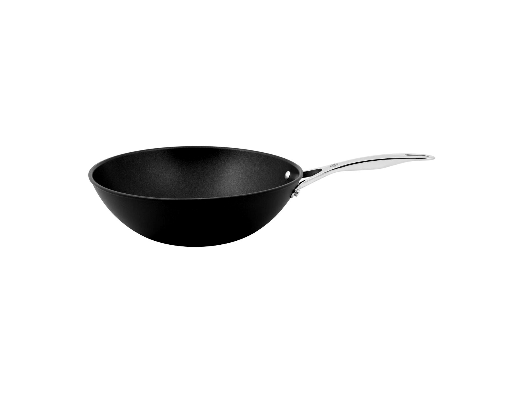 A wok serpenyő rendkívül ellenálló Keravis Ti-X tapadásmentes bevonattal rendelkezik, amely 5 rétegből áll, titán réteggel javítva. A wok serpenyő fém eszközökkel is használható. Az indukcióhoz alkalmas serpenyő alapja, amely alumíniumból és acélból áll, minden hőforráshoz használható. A serpenyő alapját a hő gyors felszívódása különbözteti meg, ezért eléri a sütés ideális hőmérsékletét. Az öntöttvas kinézetű serpenyő hidegen sajtolt kovácsolt alumínium testtel rendelkezik, ami extra garancia arra, hogy a serpenyő nem deformálódik el. Kívülről a serpenyő magas hőmérsékletnek ellenálló bevonatú, könnyen tisztítható. A V alakú rozsdamentes acél fogantyú, amelyet kifejezetten a túlmelegedés késleltetésére terveztek, alkalmas a kemencében való felhasználásra, magas hőmérsékleten.