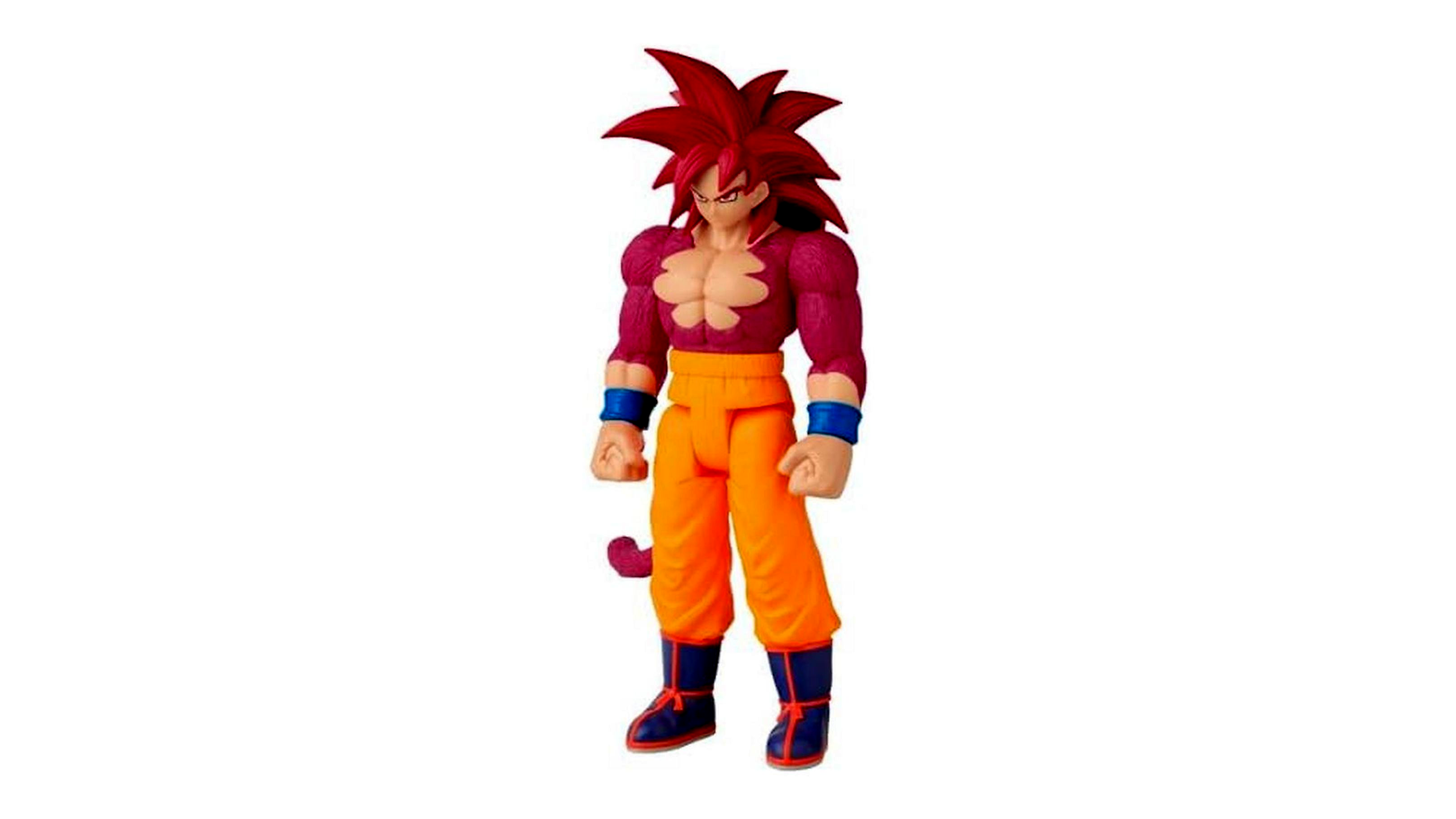 • Ikonikus Super Saiyan 4 megjelenés: többrétegű, dús haj, erőteljes tekintet, jellegzetes testarányok és póz.
