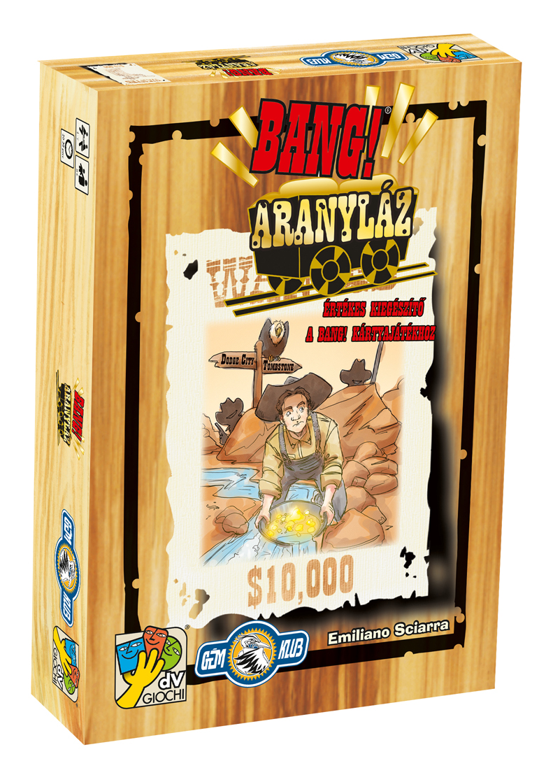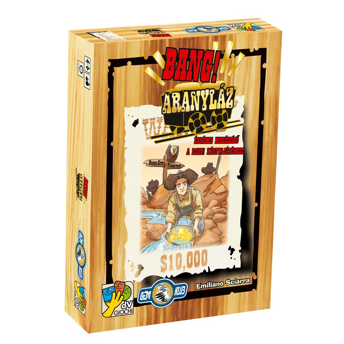 A máig elsöprő sikernek örvendő Bang! társasjáték egyik legnépszerűbb kiegészítője az Aranyláz. Hogy miért? Mert nincs igazi vadnyugat naptól cserzett szerencsevadászok nélkül! Az Aranyláz paklija sokféle meglepetést rejt. Az aranyrögökből felszereléseket vásárolhatnak a játékosok: csizmát, védőtalizmánt vagy épp szerencsepatkót, hátha tényleg melléjük szegődik a szerencse. De ha mindez haszontalannak bizonyul, akkor sincs minden veszve - mostantól a kiesett játékosok sem végleg kerülnek ki a játékból, hanem szellemként visszatérhetnek, hogy bosszút álljanak ádáz ellenségeiken!