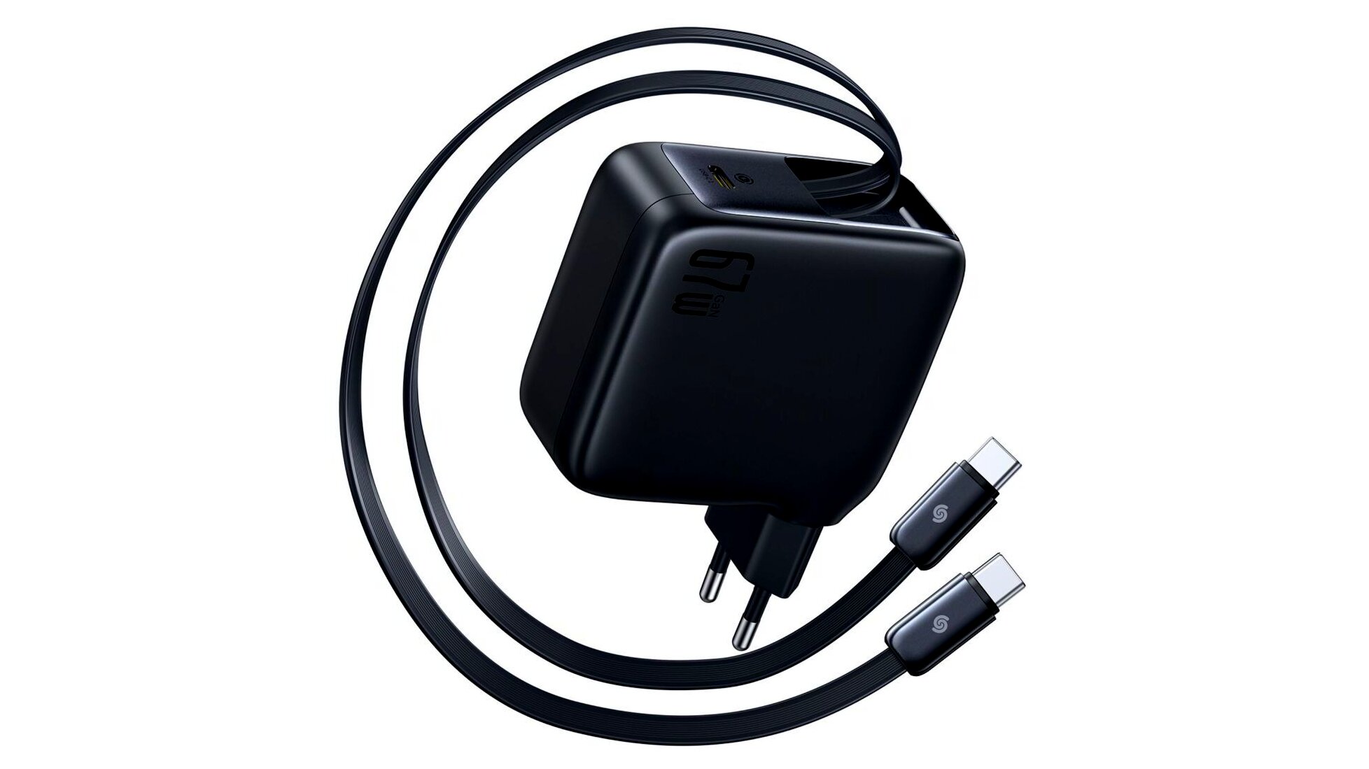 Baseus EnerCore CJ21 USB-C Hálozati Gyorstöltő Adapter 67W + 2x Visszahúzható USB-C Kábel - Fekete