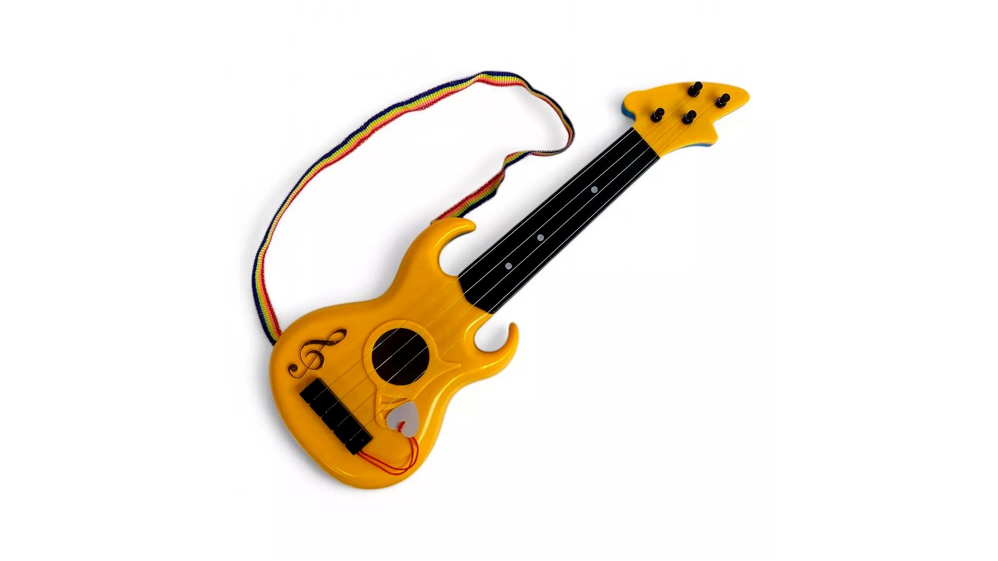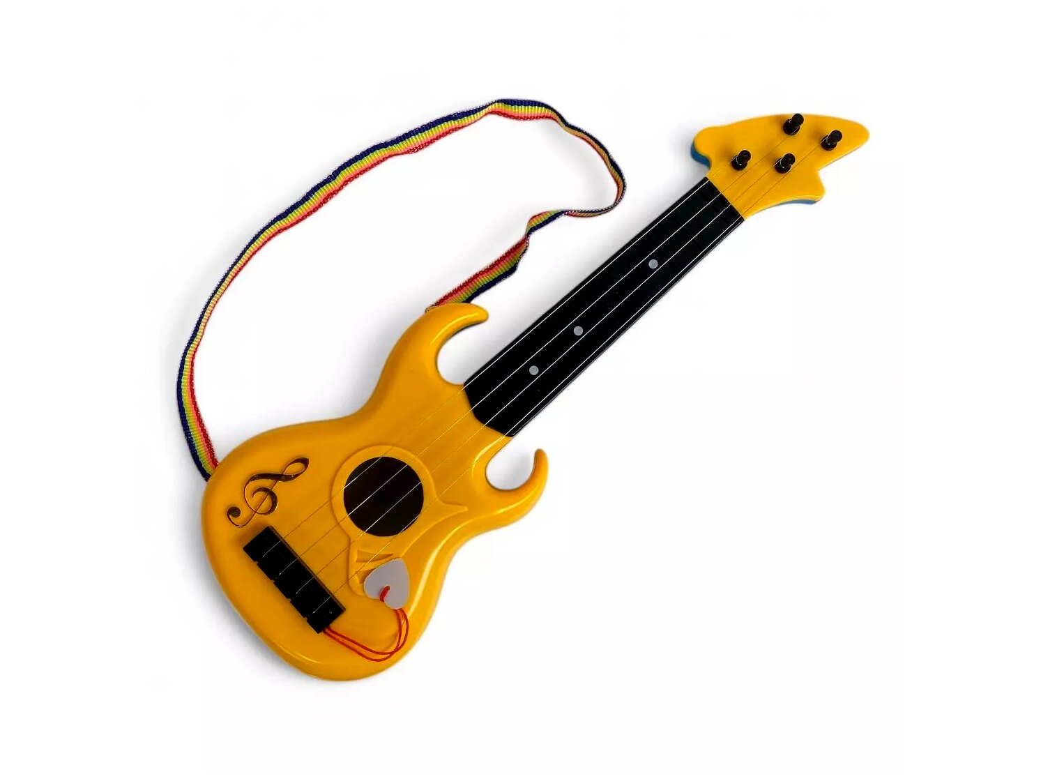 Ez a gyerek gitár lenyűgözően valósághű kialakításával azonnal a kis zenészek kedvencévé válik. Az élénk sárga szín és a rockos megjelenés garantáltan felkelti a gyermekek figyelmét és ösztönzi őket a játékra. A hangszer valódi húrokkal rendelkezik, így egy igazi gitár élményét nyújtja, miközben a készségfejlesztés is előtérbe kerül.