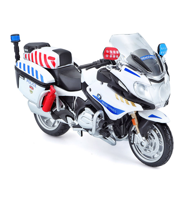 Bburago fémből és műanyagból készült 1:18-as méretarányú kék, fehér magyar rendőrmotor. A részletgazdag kivitelezésű, szirénával és oldaltáskával felszerelt magyar rendőrmotor pont olyan, mint az igazi, így még élethűbb játékélményt nyújt a gyerekek számára.