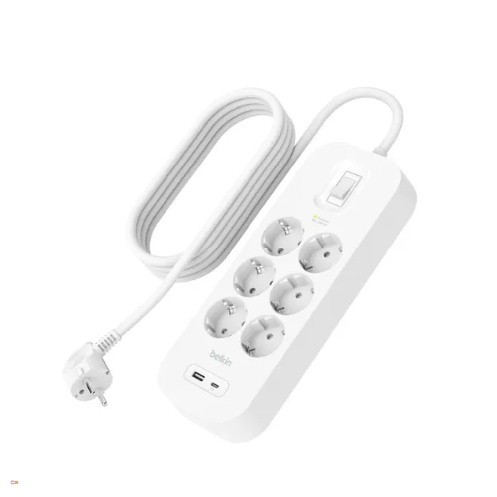 A Belkin túlfeszültségvédett elosztóval biztonságosan üzemeltetheted otthoni és irodai eszközeidet, miközben kényelmesen töltheted mobileszközeidet USB‑n keresztül. A hat darab földelt hálózati aljzat és a kombinált USB‑A + USB‑C töltőportok ideálisak TV-hez, számítógéphez, játékkonzolhoz, routerhez, valamint okostelefonok és táblagépek gyors és rendezett töltéséhez.