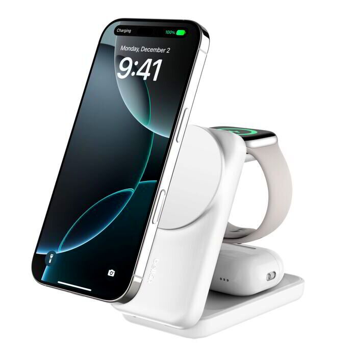 Belkin UltraCharge Qi2 Mágneses 3-in-1 hálózati töltő 25W – Fehér