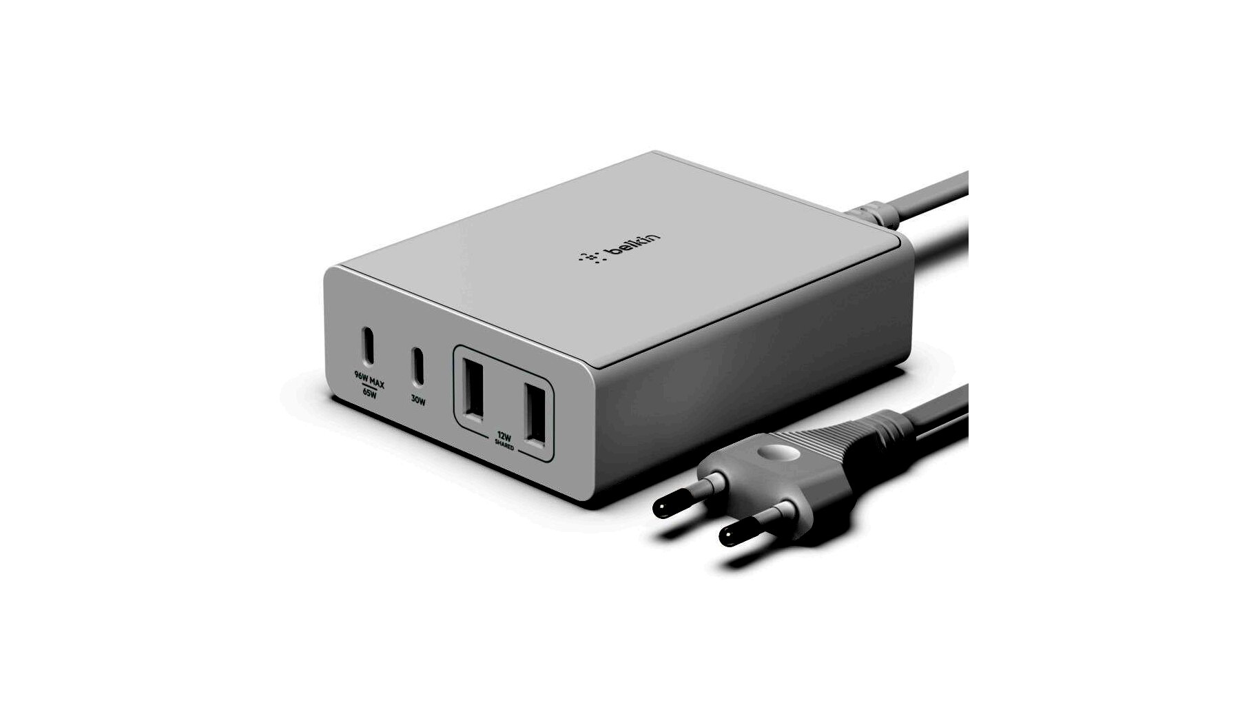 Integrált GaN technológiával rendelkezik a biztonságos és hatékony, nagy teljesítményű töltés élményéért. 108 W kombinált teljesítmény akár 4 kompatibilis eszköz töltéséhez a 2x USB-C és 2x USB-A porton keresztül.