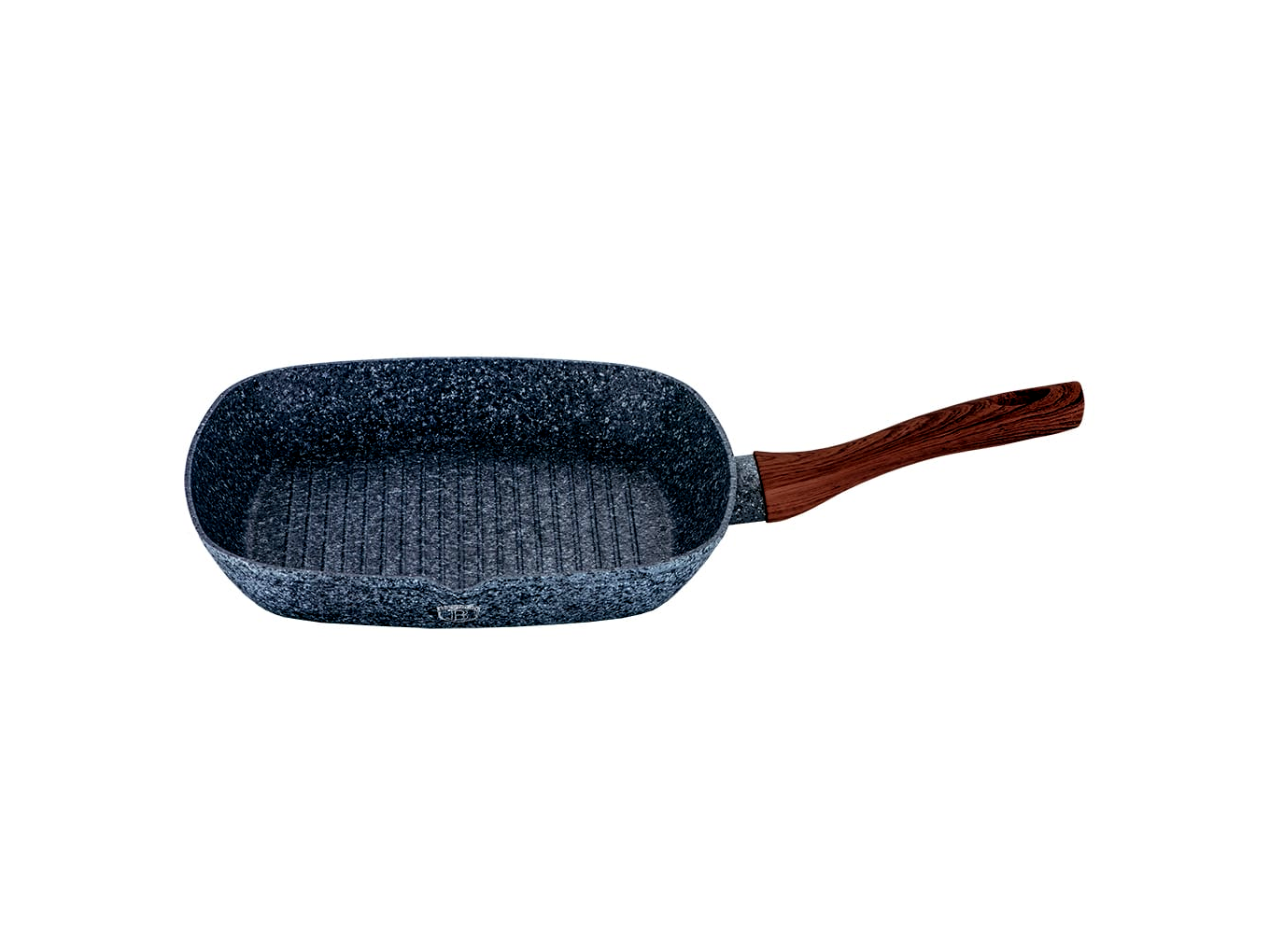 Szín: A grill serpenyő szürke fa hatású nyéllel rendelkezik, amely nemcsak stílusos megjelenést kölcsönöz neki, hanem egyben praktikus és kényelmes fogást is biztosít.