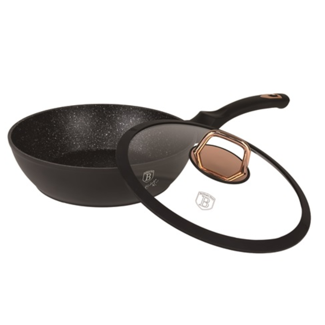 A serpenyő ergonomikus, puha tapintású fogantyúja a Berlinger Haus felhasználói kényelem iránti elkötelezettségének másik ismertetőjele. Szilárd fogást ígér, és hűvös marad, így magabiztosan forgathatod, keverheted és piríthatod.