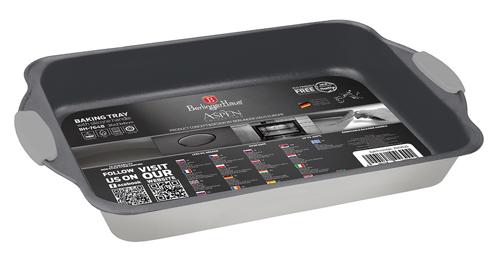 Ez a Berlinger Haus által tervezett és gyártott mély hosszúkás sütőtepsi nem csak esztétikailag gyönyörű, de funkcionálisan is kiváló választás. Szatén szürke színével és minőségi szilikon fogóival nemcsak a konyhád dísze lehet, hanem a mindennapi sütést is megkönnyíti.