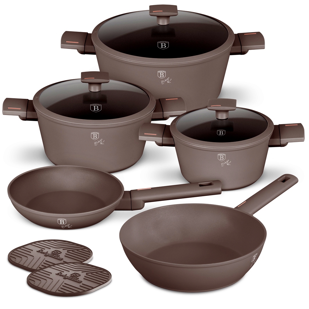 Letisztult, matt taupe színvilágával ez a 10 részes edényösszeállítás egyszerre elegáns és praktikus választás mindennapi főzéshez. Minimalista megjelenése könnyedén illeszkedik világos, skandináv jellegű konyhákba és karakteres, sötétebb enteriőrökbe is, miközben professzionális használhatóságot kínál otthoni környezetben.