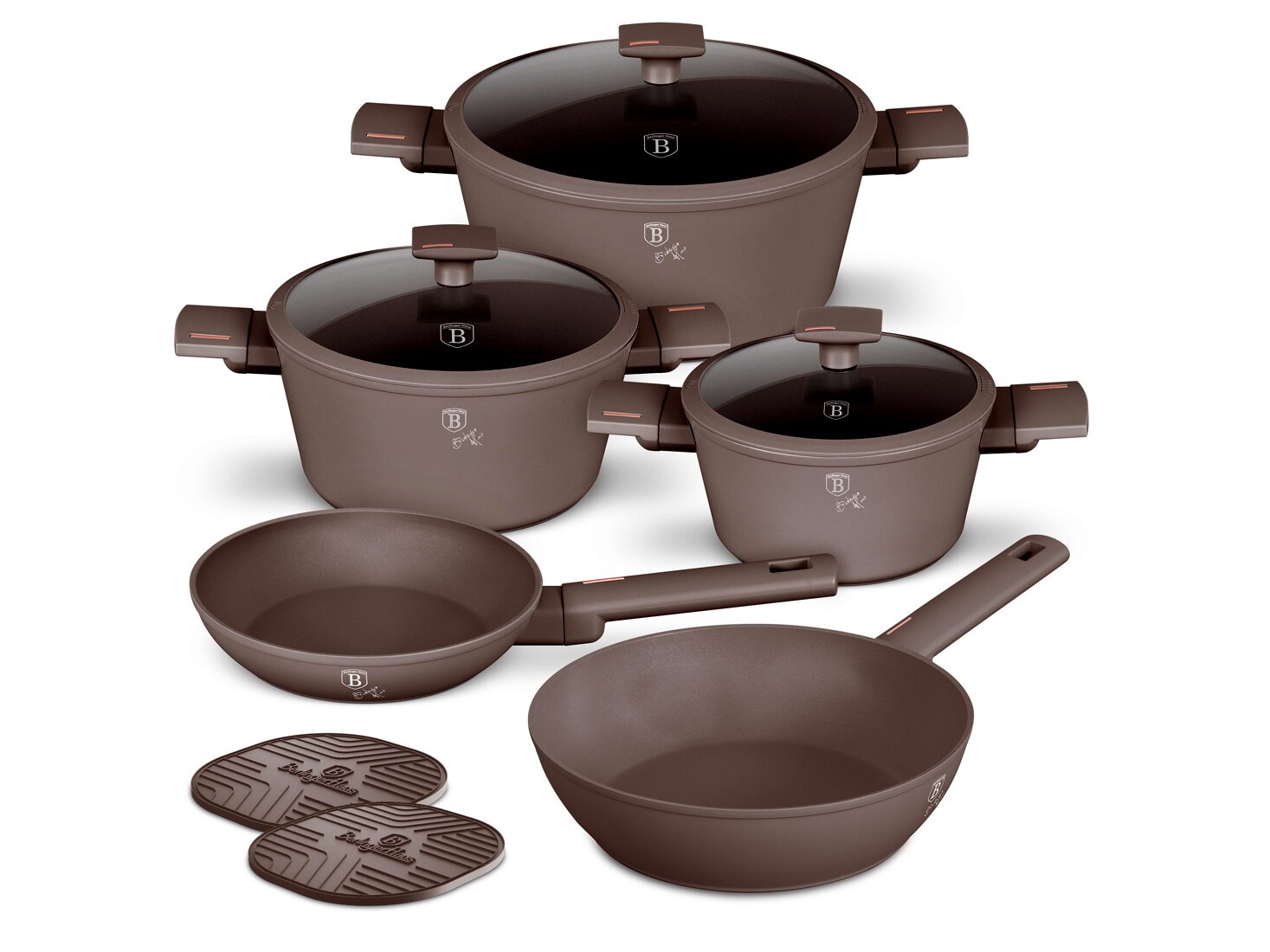 Az edénykészlet anyagai PFOA-, ólom- és kadmiummentesek, így kifejezetten korszerű és környezetkímélő megoldást jelentenek. A matt felület és a harmonikus színvilág nemcsak esztétikus, hanem hosszú távon is megőrzi elegáns megjelenését.