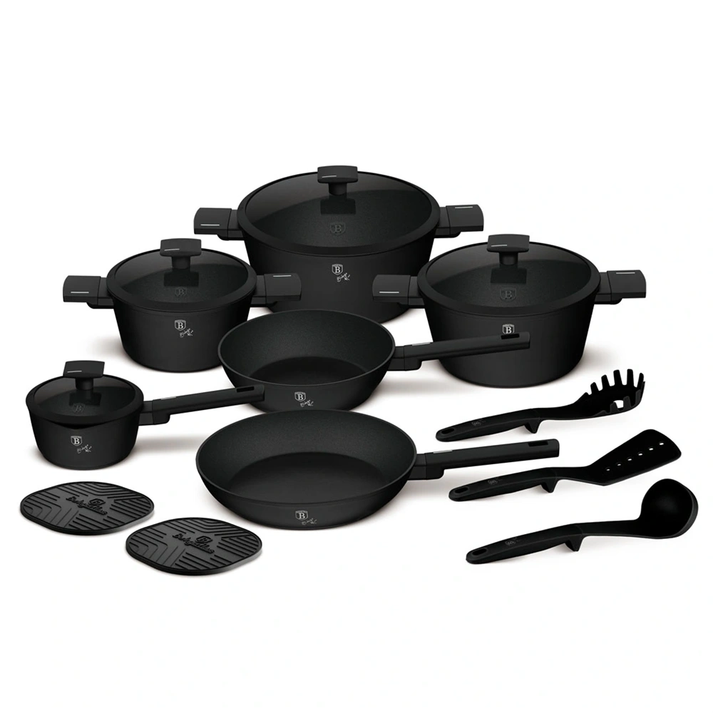 Ez a 15 részes, matt fekete edénykészlet a modern konyhák stílusos, mégis rendkívül praktikus központi eleme. Letisztult, minimalista megjelenése és átgondolt részletmegoldásai miatt nemcsak főzéshez, hanem a konyhapulton kiállítva is tökéletesen megállja a helyét.
