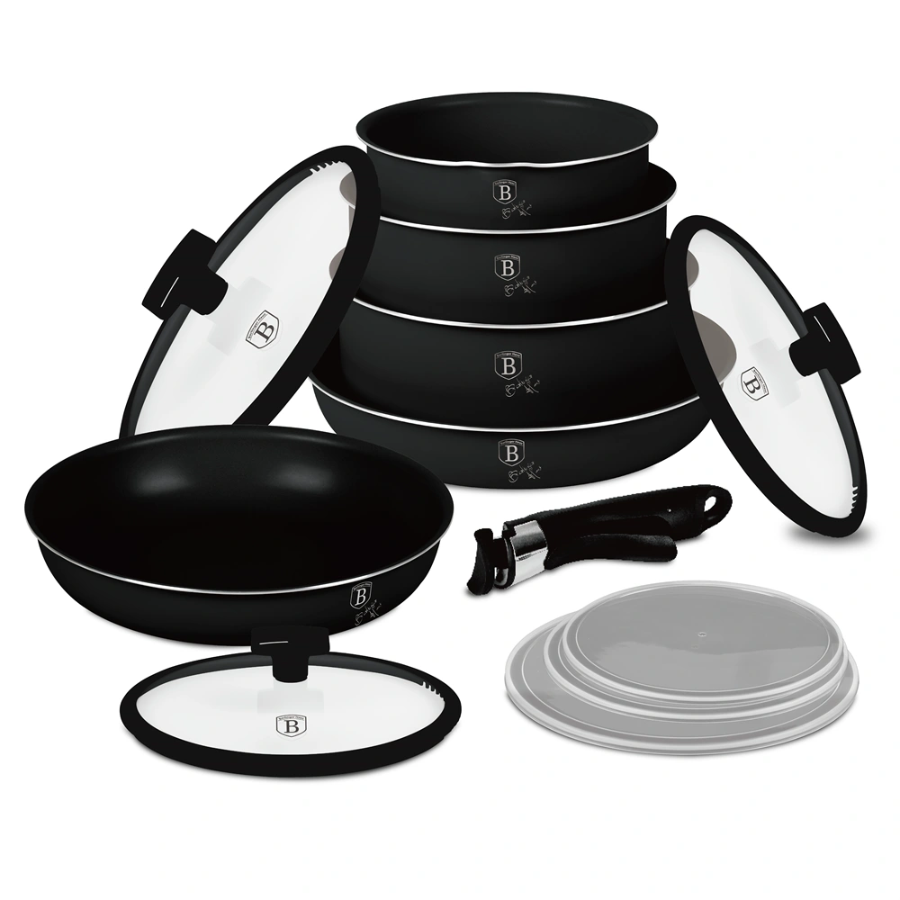 A Berlinger Haus BH/8249 serpenyő szett 12 darab különböző méretű és rendeltetésű edényt és kiegészítőt tartalmaz, amelyek garantálják a kényelmes és sokoldalú főzést.