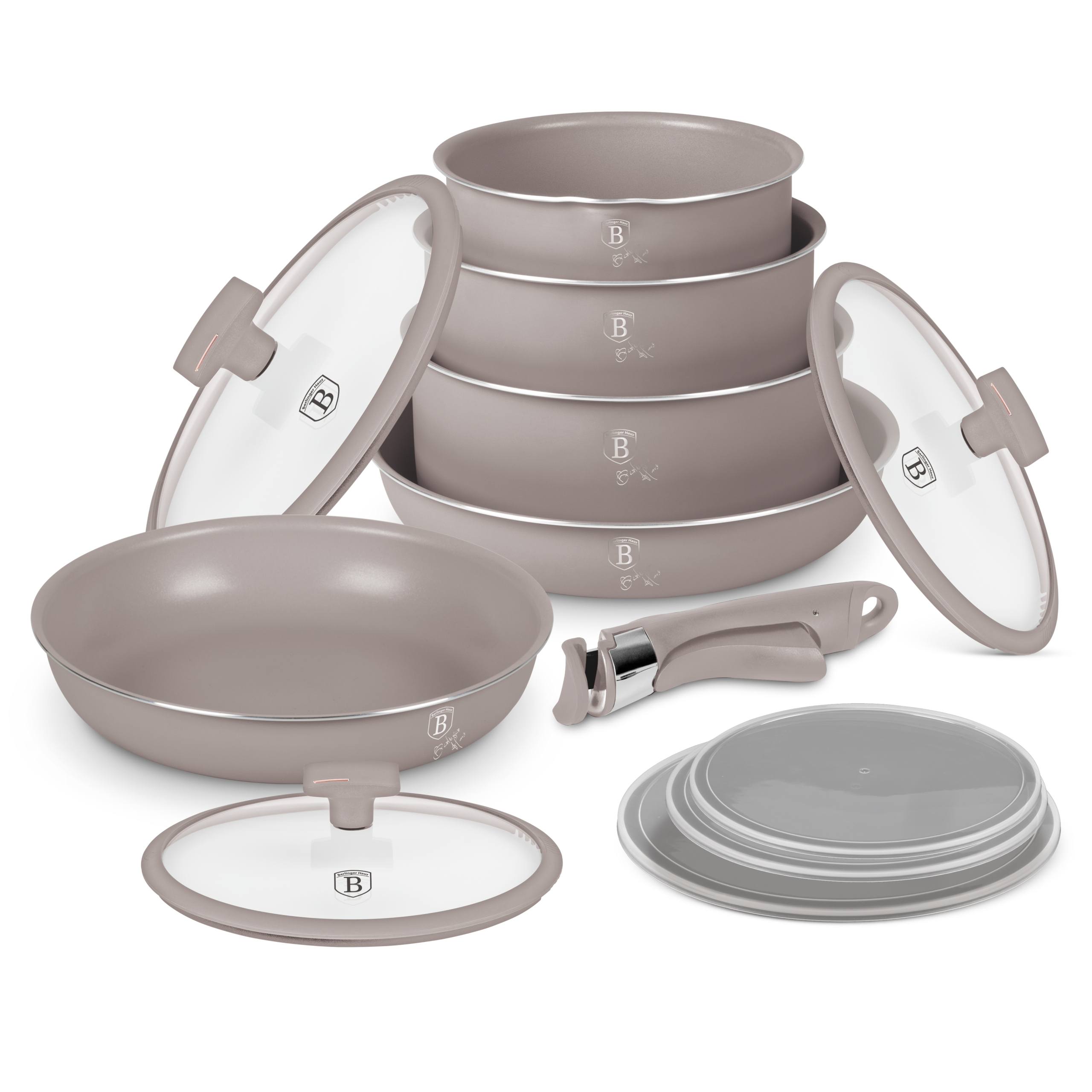 Kényelmes és sokoldalú megoldás minden konyhában. A Berlinger Haus BH/8251 serpenyő szett 12 részes, levehető nyéllel ellátott kialakításának köszönhetően minden főzési igényt kielégít. Legyen szó párolásról, sütésről vagy melegítésről, ez a szett minden feladatra készen áll.