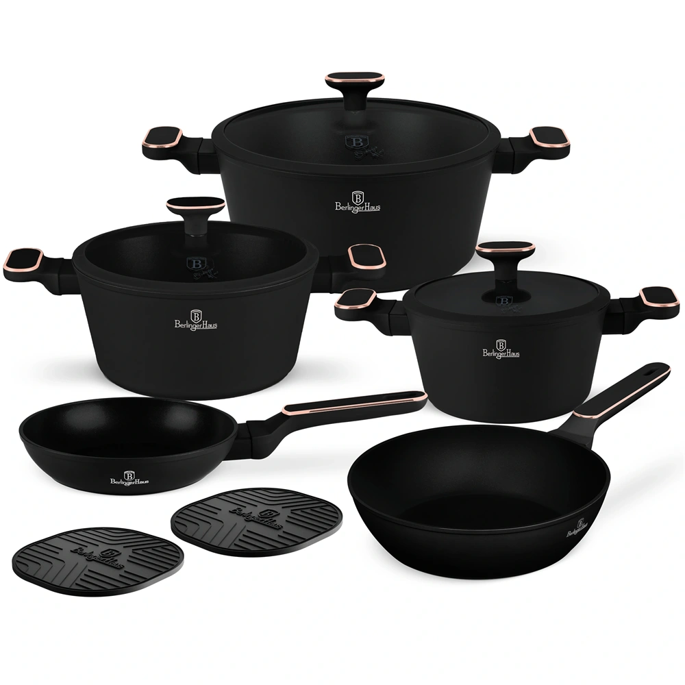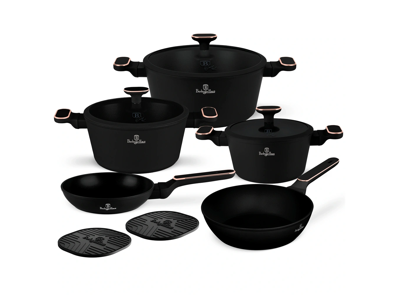 A Berlinger Haus BH8362 Black Rose 10 darabos főzőkészlet egyesíti a nélkülözhetetlen edényeszközöket egyetlen stílusos kollekcióban. Sokoldalú, mindennapi használatra tervezett készlet, amely mindent biztosít a finom ételek egyszerű elkészítéséhez.