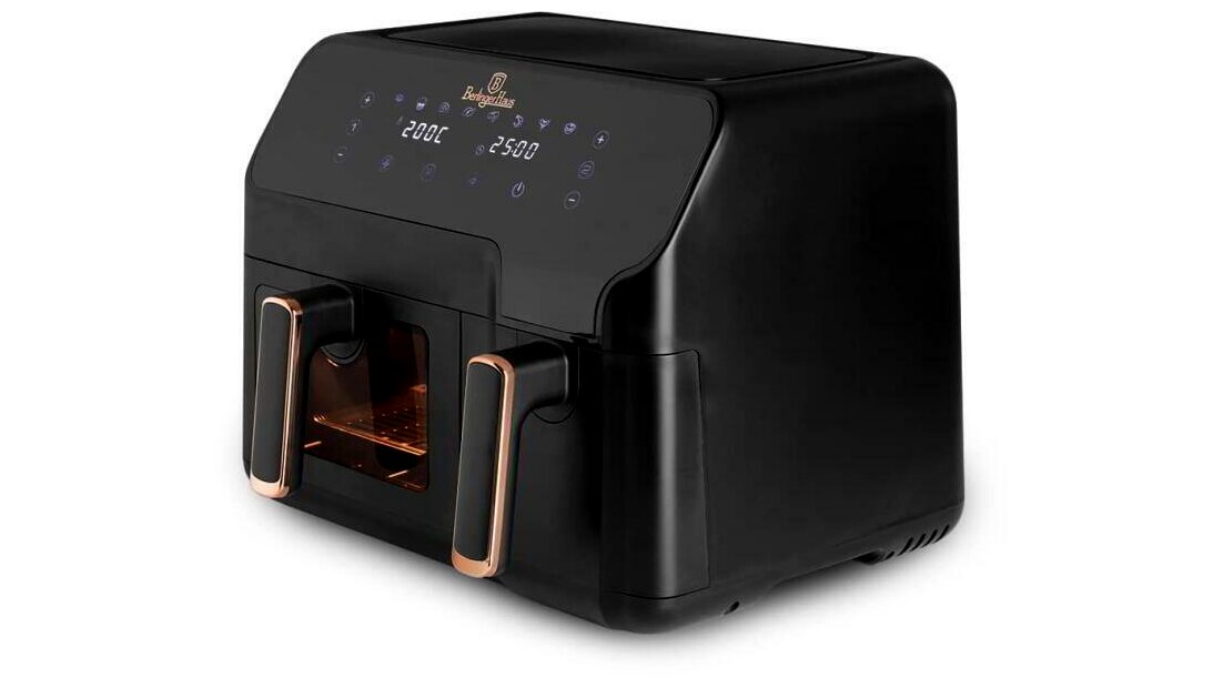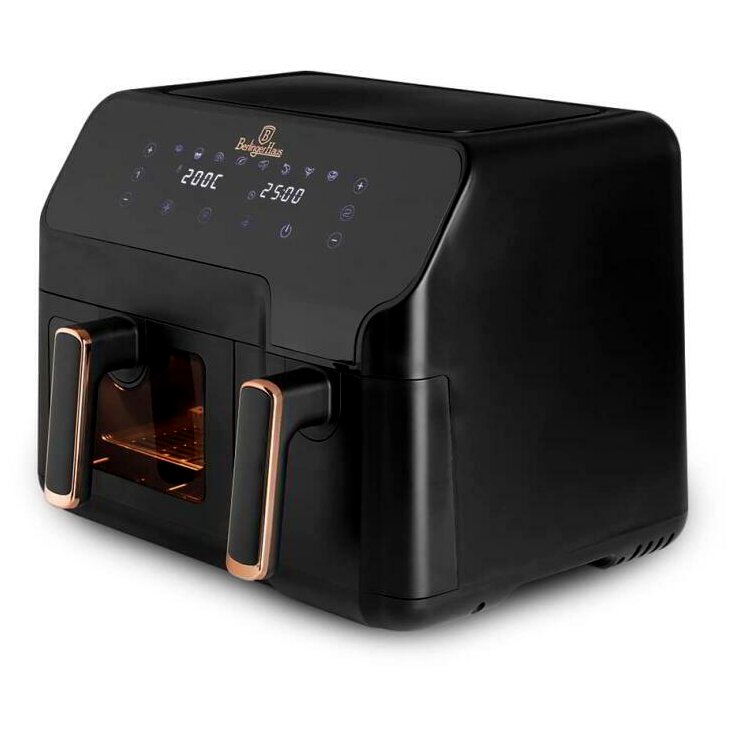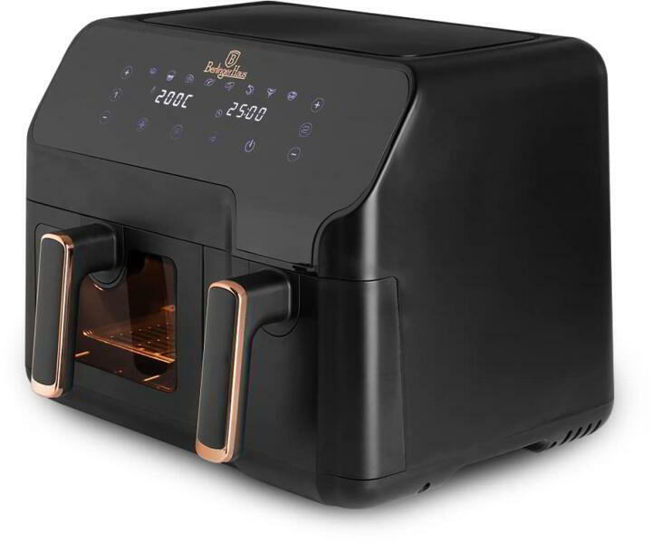 Ismerje meg a Berlinger Haus legújabb kétrekeszes forrólevegős sütőjét, amely modern stílusával és lenyűgöző teljesítményével joggal hódítja meg a konyhákat. Ez a fekete-rose gold színkombinációval ellátott berendezés nem csak esztétikus kiegészítője lesz otthonának, de jelentősen megkönnyíti és egészségesebbé teszi az ételkészítést.