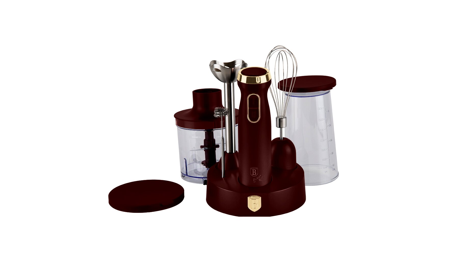 A Berlinger Haus BH/9563 matt bordó 6 részes botmixer szett ideális választás minden konyhába, ahol a praktikus és elegáns konyhai eszközök nagyra vannak értékelve. A Berlinger Haus hírnevét az innovatív és minőségi konyhai felszerelések terén építette ki, és ez a botmixer szett sem kivétel.