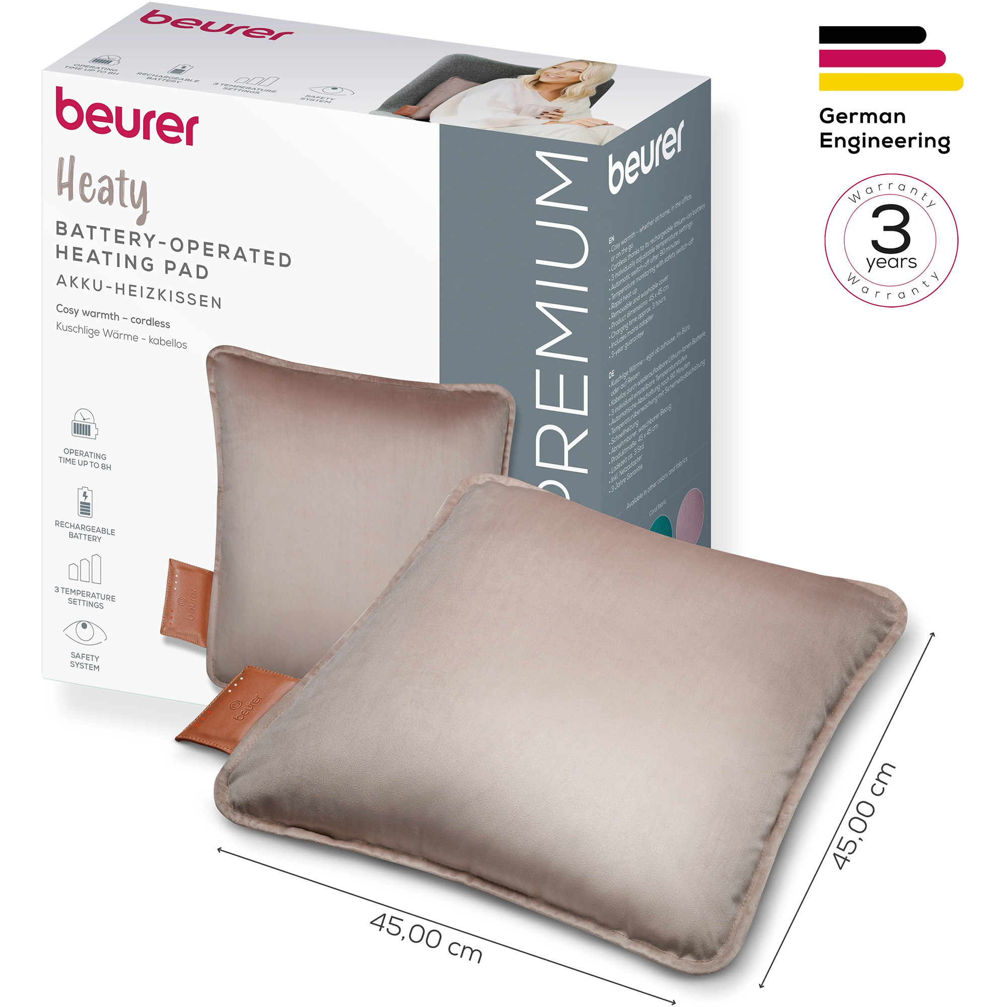 A három fokozatú hőmérséklet-szabályozás lehetővé teszi, hogy a finom langyostól az intenzívebb meleg érzetig könnyen beállítsd a számodra ideális szintet. A megvilágított kapcsolófokozatoknak köszönhetően sötétben is egy pillantással ellenőrizhető, melyik beállítás aktív.