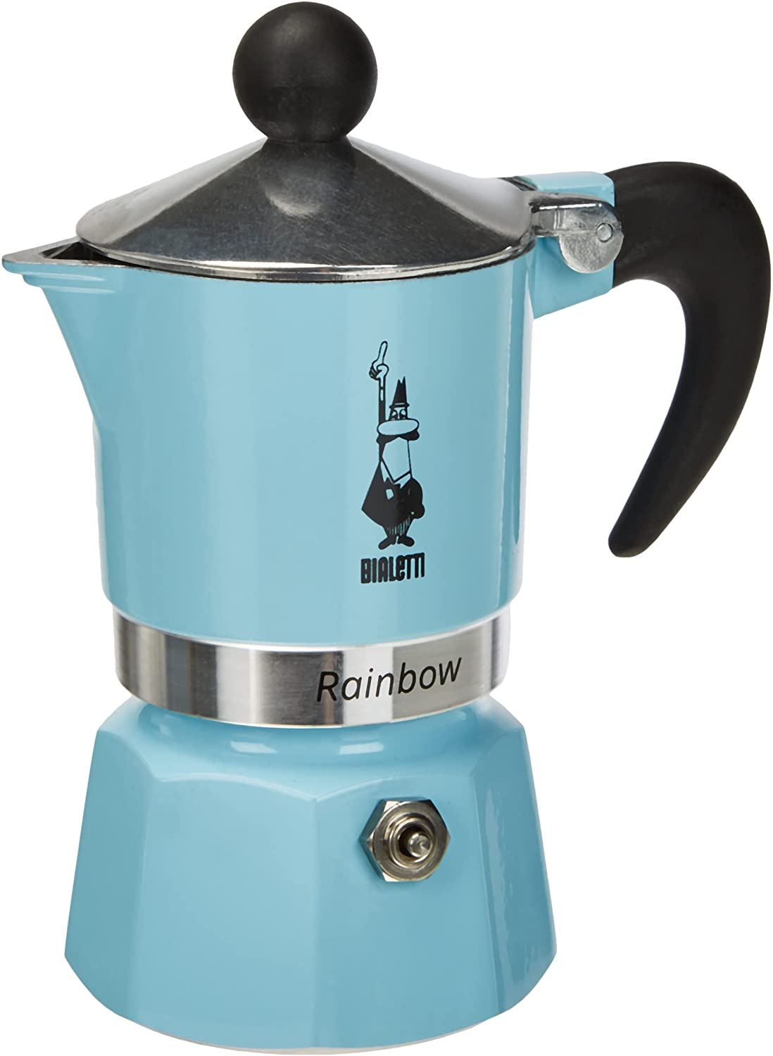 Most kevesebb, mint 5 perc alatt készítsen egy csésze bársonyos kávét a Bialetti Rainbow Light Blue kávéfőzővel.