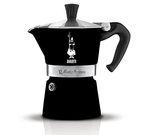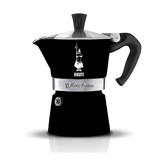 Moka Expresszo fekete alumínium eszpresszó készítő. Klasszikus divatos fekete színű. Polírozott alumíniumból készült, ergonomikus fogantyúval és biztonsági szeleppel. Könnyű és egyszerű tisztíthatóság. Alkalmas minden típusú tűzhelyzhez (kivéve az indukciós).
