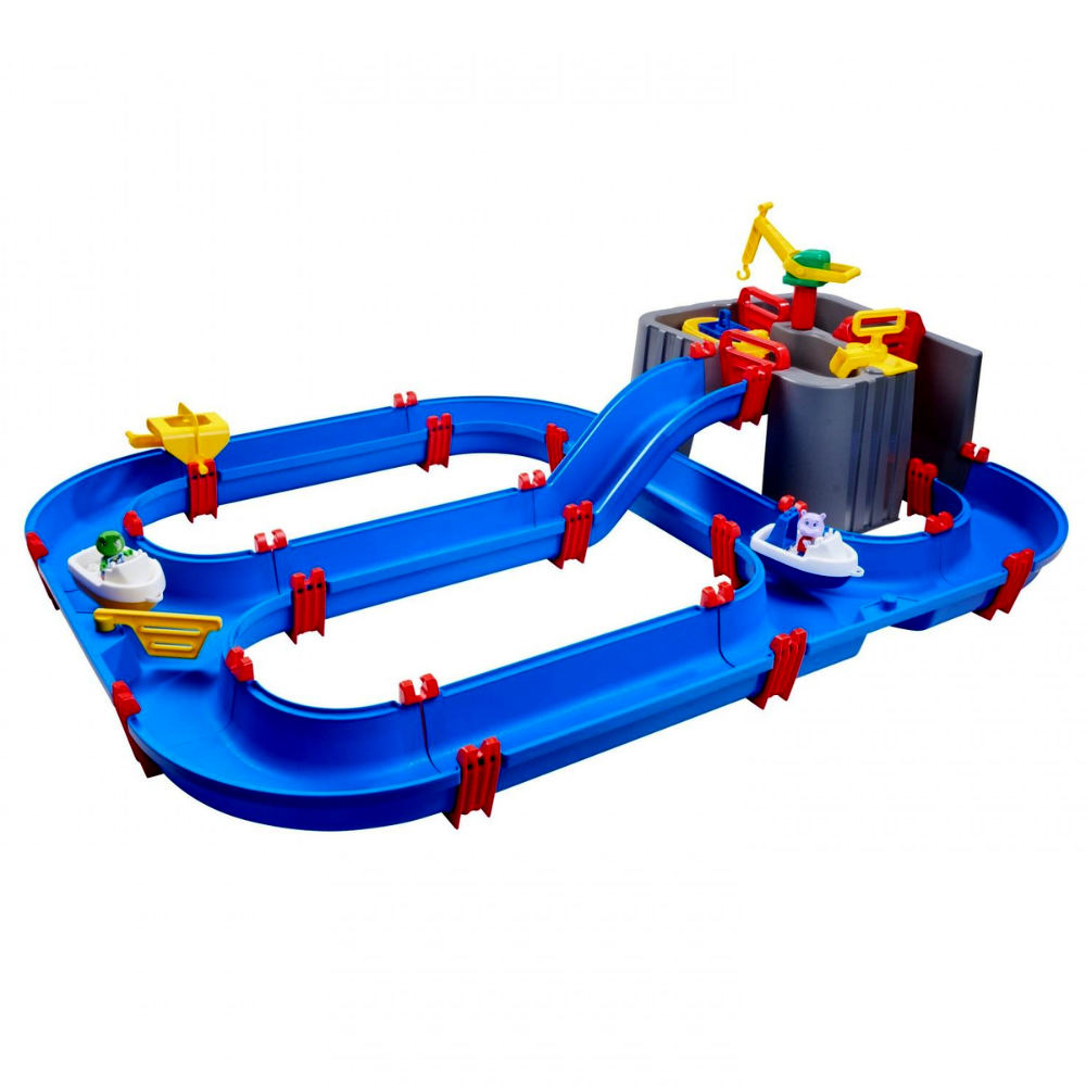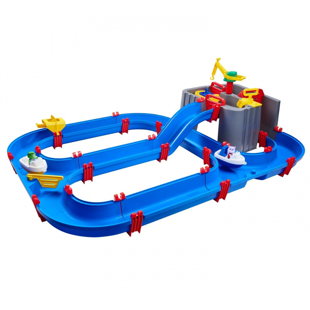 • Izgalmas kikötői vízi út – Mozgatható daruval, erős vízpumpával és AquaPlay-jellegű zsilipekkel, amelyek segítségével a gyerekek irányíthatják a víz áramlását, emelhetik-süllyeszthetik a vízszintet, és szállíthatják a csónakokat a különböző „állomások” között.