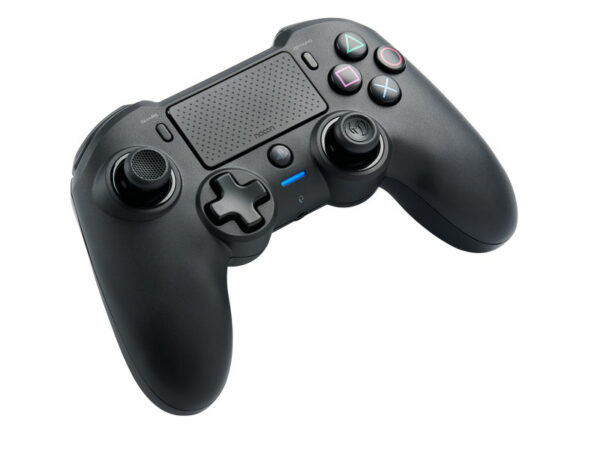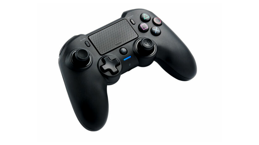 Nacon fekete aszimmetrikus vezeték nélküli vezérlő, amely hivatalosan licencelt Sony Interactive Entertainment támogatással rendelkezik.