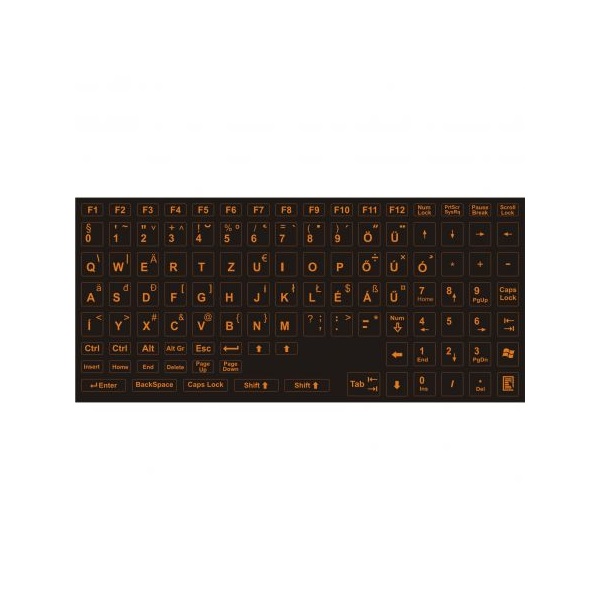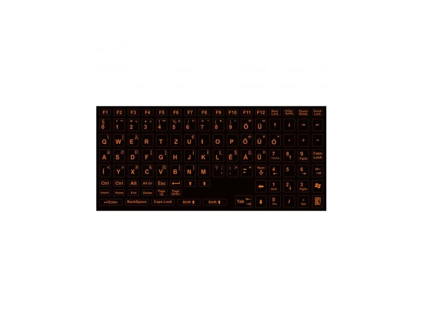 Billentyűzet matrica HU világító narancs betű fekete alapon