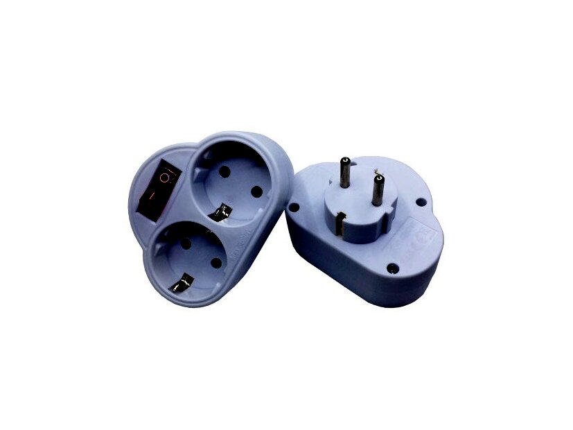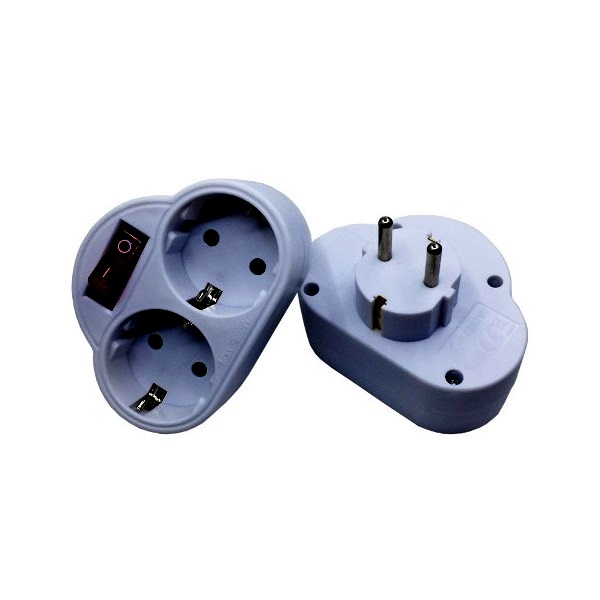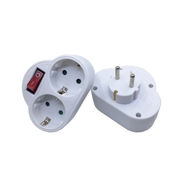 Hálózati Dugalj 2 aljzatos elosztó kapcsolóval - Fehér