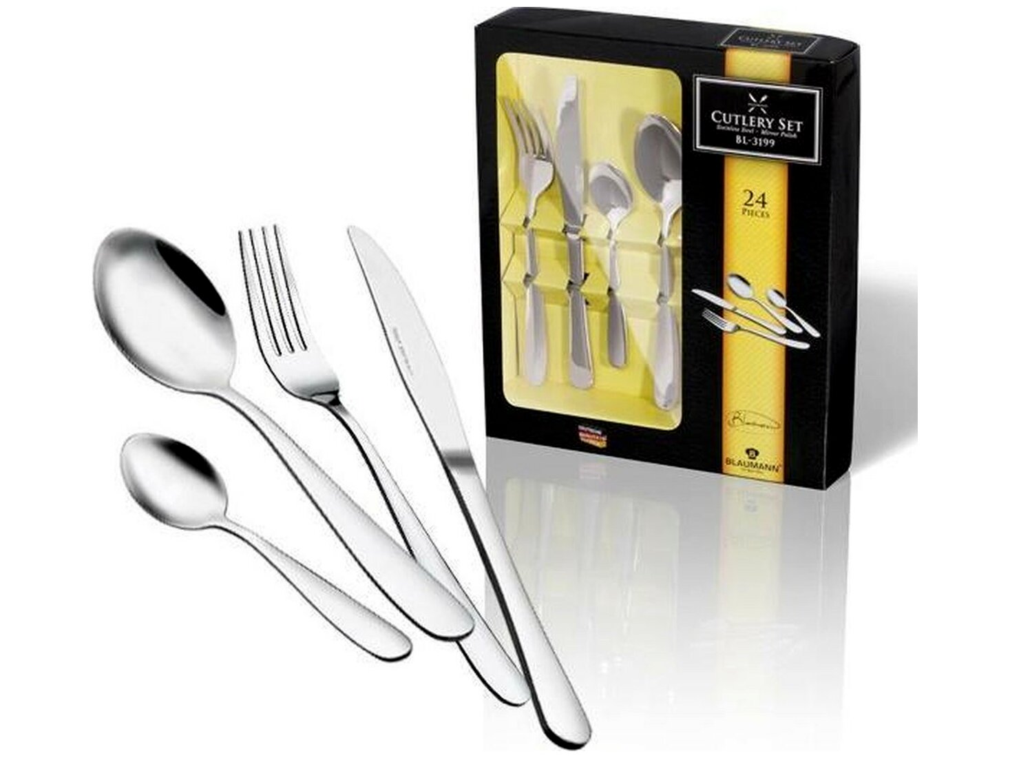 - Készlet tartalma: 24 részből áll, 6 db evővilla, 6 db evőkanál, 6 db kés, 6 db teáskanál