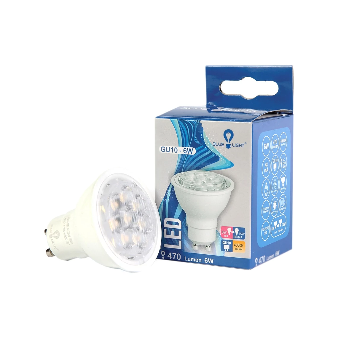 A Blue Light GU10 6W LED izzó 4000K tökéletes választás azoknak, akik energiatakarékos és tartós világítást keresnek. A letisztult és modern kialakítás kiválóan illeszkedik bármilyen enteriőrbe, legyen az otthoni vagy üzleti környezet.