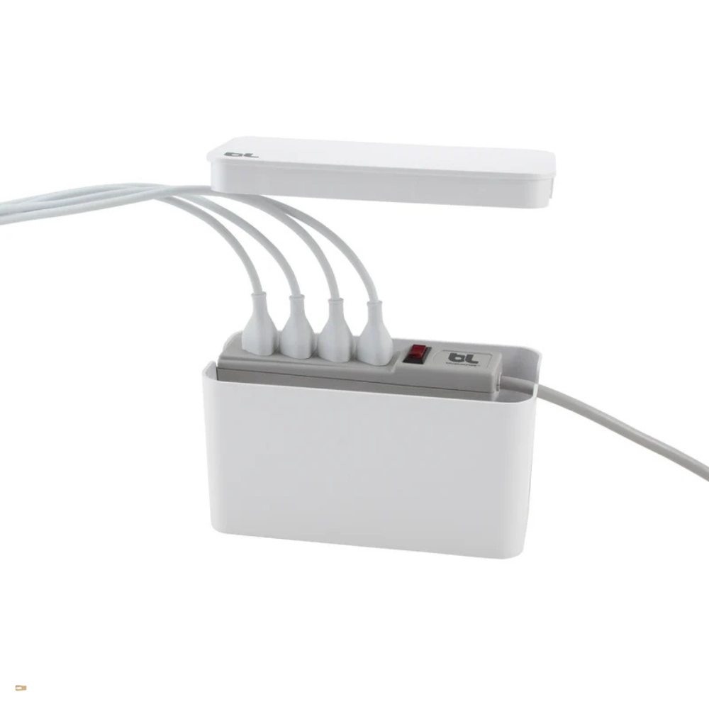 A belső tér kialakítása egy 4 aljzatos elosztó számára ideális, így a legfontosabb eszközök – például laptop, monitor, telefon- és tablet‑töltők, asztali lámpa – egy helyen, biztonságosan csatlakoztathatók. A kábelek és csatlakozók a dobozban rejtve maradnak, kívül pedig csak a rendezett, letisztult látvány marad.