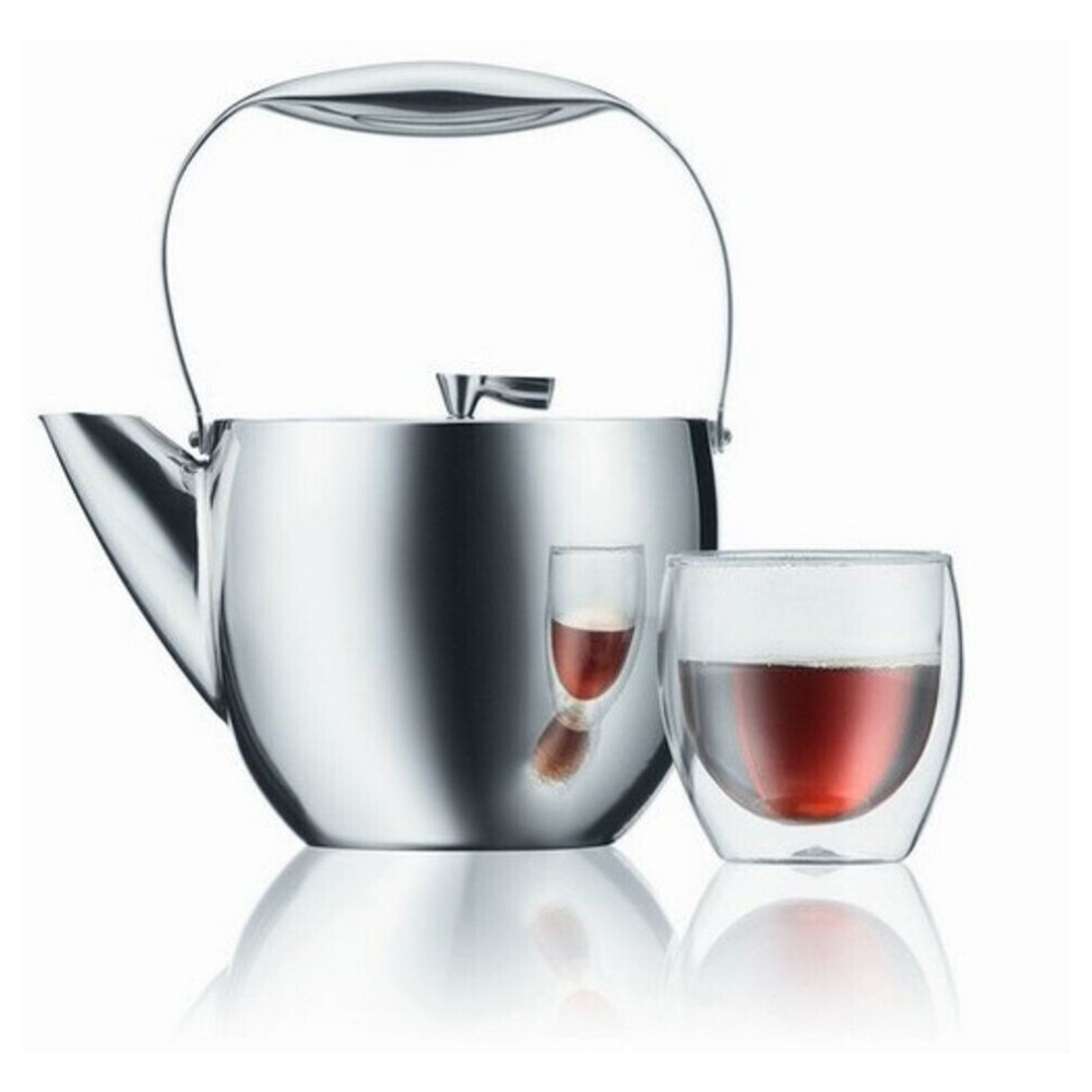A teafőző teljes egészében rozsdamentes acélból készül, amely ellenálló a korrózióval és a mindennapos használat okozta igénybevétellel szemben. A duplafalú szerkezet termoszként viselkedik: a tea hosszabb ideig marad meleg, miközben a külső fal kevésbé forrósodik át, így komfortosabb a fogása. Az ezüstszínű, letisztult forma illik modern, minimalista és klasszikus konyhákba is, az asztalon pedig stílusos szervírozó edényként funkcionál.