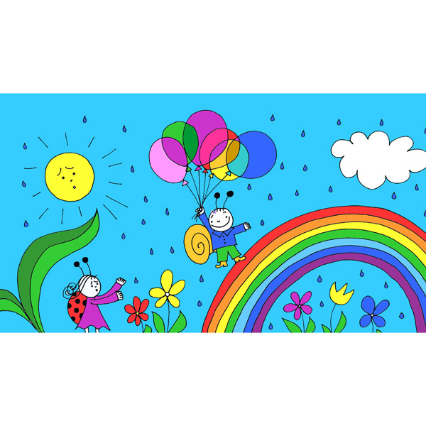 Bogyó, a csigafiú szomorúan veszi tudomásul, hogy nem tud felmászni a szivárványra. Barátai azonban megvigasztalják: születésnapjára egy szivárvány színű csúszdát készítenek neki. A mesét a fiatal írónő, Bartos Erika saját grafikával illusztrálta. Ismerd meg Bogyó és Babóca kalandjait a Bogyó és Babóca 1. - A szivárvány diafilm segítségével.