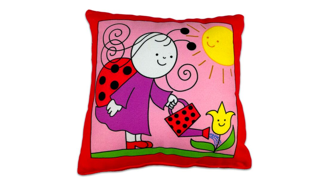 Helyezd magad kényelembe a Bogyó és Babóca mesefilmből megismert katicáról, Babócáról mintázott díszpárnával! A párna elején kedvenc mesehősöd láthatod, miközben megöntözi virágát. A párna felületi mosással tisztítható, mosógépbe nem rakható. A párnahuzat anyaga: 100% poliészter, töltőanyag: szálbunda. Minősége: I. osztály. Mérete: 28 x 26 cm.